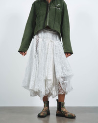 Longline skirt in mixed white lace. Crafted in a selection of laces; some flat, some pleated, for a sunray effect. Carefully pleated, constructed and pieced together in Portugal. Details - Colour: White - Composition [Main]: 100% Polyester - Composition [Contrast 1]: 100% Polyester - Composition [Contrast 2]: 100% Polyester - Made in: Portugal - Model [Wears]: Size 6, 178cm Tall - SKU: SK0200PG1912001