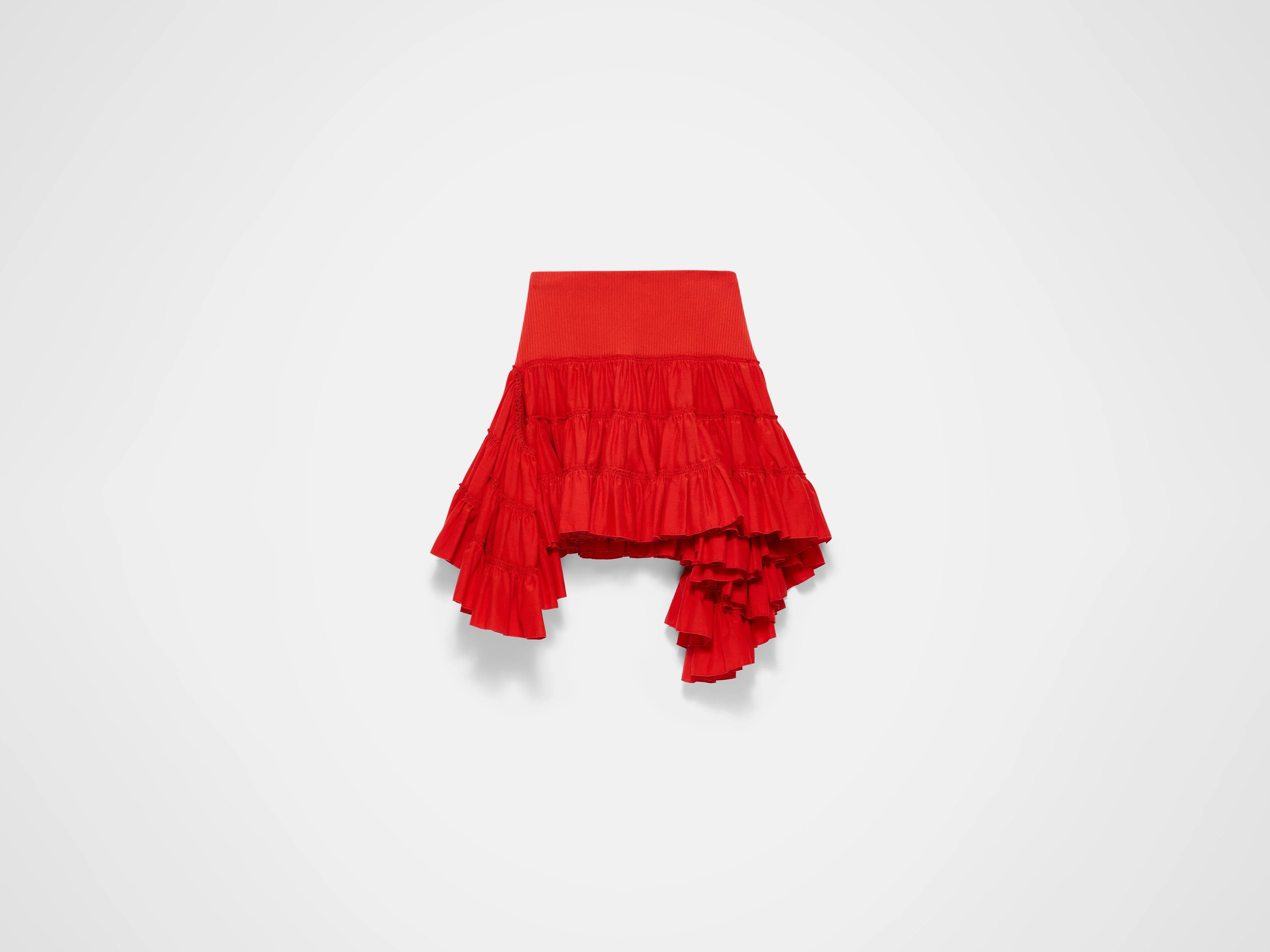 Ruffle skirt in red ruched fluid cotton silk. Features a knit rib waist band that fits snugly to the body. Details - Colour: Red - Composition [Main]: 71% Silk, 29% Cotton - Made in: Portugal - Model [Wears]: Size 8, 178cm Tall - SKU: SK0198PG1899459