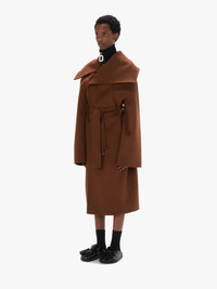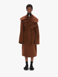 - Wide collar wrap coat - Relaxed fit - Asymmetric oversized collar - Dropped shoulder - Wrap front closure - Back slit - Hidden buttons - Tonal hardware - Unlined - Oversized style - take your usual size