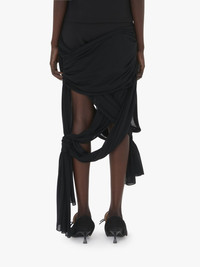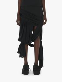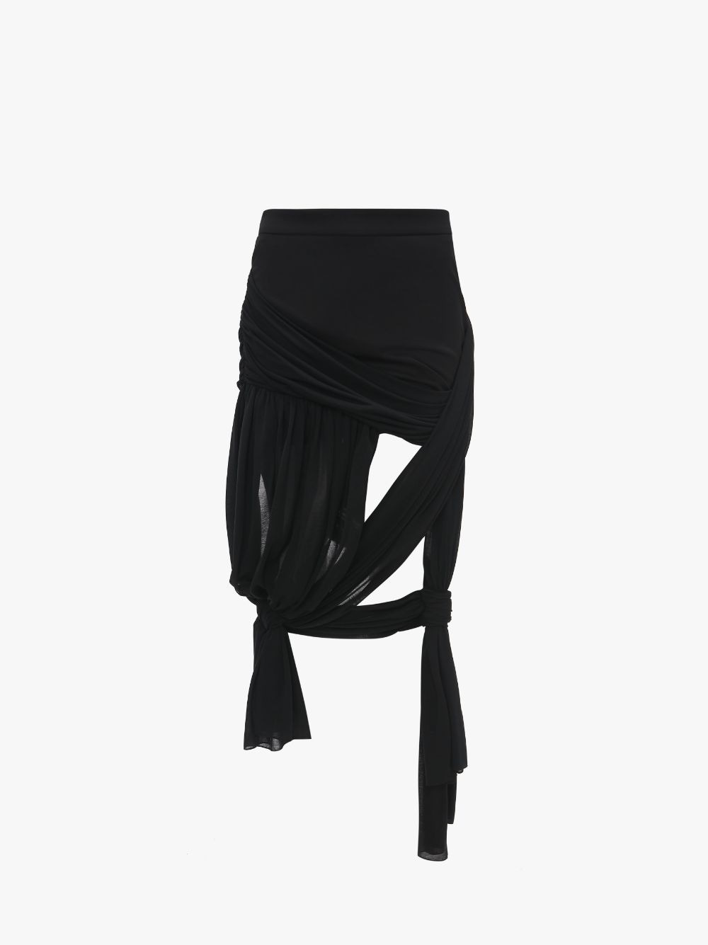 - Fitted silhouette skirt - Layered draped construction - Knot and tie details - Asymmetric hem - Invisible side zip - Fits true to size, take your normal size.