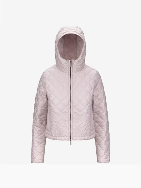 Adely is a women’s short jacket with a feminine look, ideal for mid-season wear. The soft, water-repellent and windproof nylon shell features diamond quilting that transitions into delicate floral embroidery at the lower section, offering protection from moderate rain and wind. Lightweight PrimaLoft® padding and an enveloping hood provide added warmth for early cold spells. - Soft water-repellent and windproof nylon fabric - Diamond quilting with floral embroidery - Lightweight eco-friendly PrimaLoft® padding - Medium warmth rating - Enveloping hood - Zip fastening covered by tone-on-tone trims - 2 snap-button pockets - Oversized fit - K-Way tape detail at the cuff Features Description: Jackets, Short Gender: Woman Season: Fall, Winter Composition External: 100% Polyester Padding: 100% Polyester Lining: 100% Polyester Style: K71364W - Color: B3H