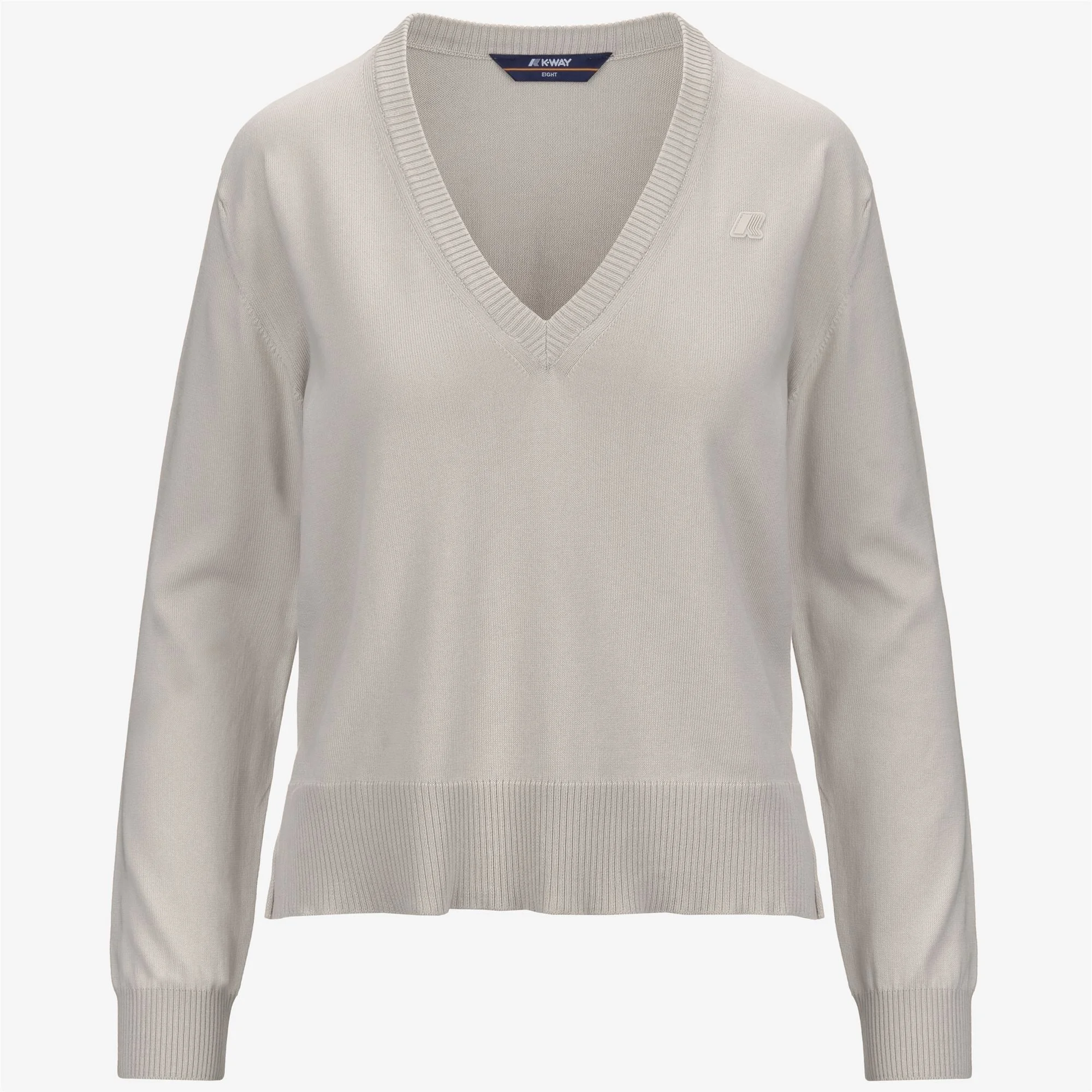 Beige Grey Women's Cotton V-Neck Crop Sweater with Ribbed Trims Adine is a women's cotton crop sweater with a regular fit and a clean, subtle appeal. This V-neck style is made from fine zero-pilling cotton plain stitch knit. The ribbed trims provide a perfect snug fit. - Zero-pilling mako cotton yarn - Fine knit - V-neck design - Ribbed trims - Regular fit - Tone-on-tone logo Features Description: KNITWEAR, Pull Over Gender: Woman Season: Spring, Summer Composition Entire: 100% Cotton Style: K2135SW - Color: 634