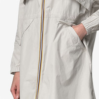 Beige Grey Women's Long Water-Repellent Jacket with Oversized Details Aube is a women's long jacket designed to celebrate the brand's sporty spirit thanks to the smooth, rubberized fabric and full-length style with oversized details such as maxi pockets and maxi front flaps. The jacket features a zip closure in K-Way signature colours, a high collar, elasticated cuffs and an adjustable drawstring at the waist. - Water-repellent polyester fabric - Heat-taped seams - Zip closure - Elasticated cuffs - 2 flap pockets - Adjustable drawstring at the waist - Regular fit - Silicone logo Features Description: Jackets, Long Gender: Woman Season: Spring, Summer Style: K8132NW - Color: 634