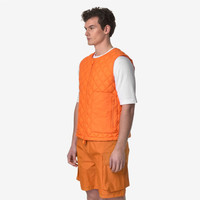 Orange Unisex Eco-Friendly City Vest Jacket with Insulation Barnely is a vest overshirt ideal for mid seasons, made from a 3-layer Amiable technical fabric that is windproof and waterproof up to 10000 water columns, thanks to the waterproof membrane. The design features a quilted ripstop pattern and insulation with Thermore, a highly insulating fiber obtained from recycled plastic. The garment is characterized by a full zip construction, round neckline, and large front pockets with zip closure. Amiable is the K-Way project that combines functionality and environmental respect. This garment is made from 100% recycled and recyclable nylon and is finished with windproof thermosealed seams, also made from recycled materials. Features Description: Jackets, Vest Gender: Unisex Season: Spring, Summer Composition External: 100% Nylon Lining: 100% Nylon Padding: 100% Recycled Polyester Style: K11512W - Color: XQL
