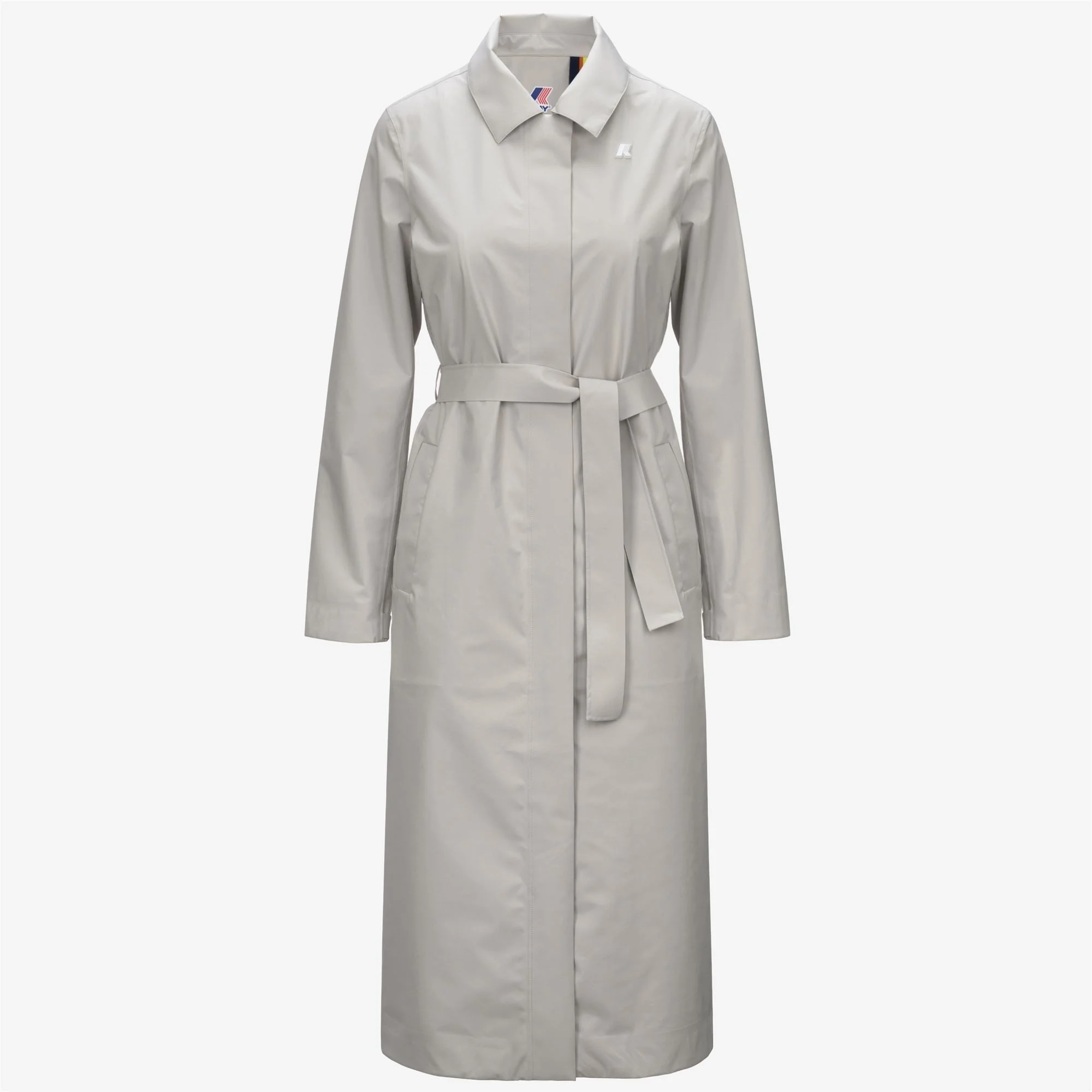 Beige Grey Women's Long Waterproof Raincoat for City Wear Barbra is a women's long raincoat with a sleek, modern line and a city-ready style with a casual twist, ideal for transitional seasons. This jacket is made from stretch technical fabric and features an interior insulating membrane, protecting from wind and rain up to 10000 water columns. The zipped side pockets and adjustable cuffs provide further functionality. - Waterproof, windproof, breathable, stretch polyester fabric - DWR (Durable Water Repellent) treatment - Insulating membrane - Heat-taped seams - Flap-covered zip closure - Waist belt - Adjustable cuffs - 2 zipped pockets - Regular fit - White printed logo Features Description: Jackets, Long Gender: Woman Season: Spring, Summer Composition Entire: 24% Poliuretane, 76% Recycled Polyester Style: K61337W - Color: 634