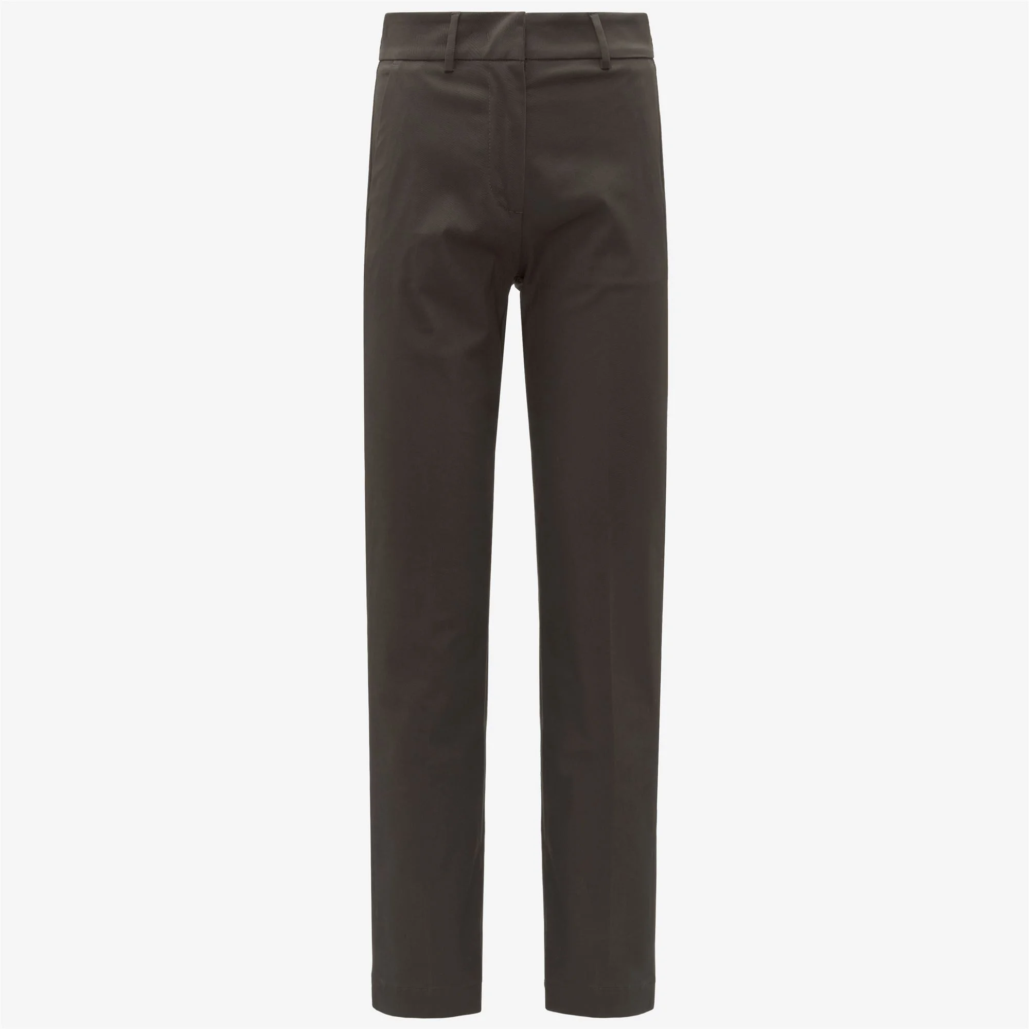 Black olive Women's Slim Fit Chino Pants with Stretch Fabric Belle women’s chino trousers feature a casual, versatile look with a slim, straight-leg cut. Made from stretch peach-feel gabardine and finished with a concealed hook-and-zip closure, they offer comfort and ease of movement. - Slim straight-leg chino style - Stretch peach-feel gabardine fabric - Zip fastening with concealed hook - Side pockets - Slim fit - K-Way tape detail on the back pocket Features Description: Pants, CHINO Gender: Woman Season: Fall, Winter Composition Entire: 96% Cotton, 4% Elastane Style: K61344W - Color: XRG