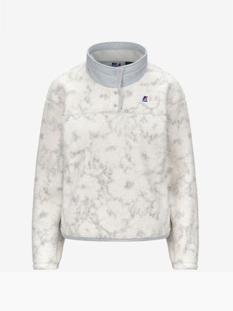 Benedicte is a women’s sweatshirt designed for outdoor activities, sports and leisure. Ideal for mid-season wear, it is made from warm, soft sherpa-effect fabric with an all-over floral print and contrasting lining. Featuring a high collar with snap-button fastening and nylon trim, it offers comfort, freedom of movement and low-bulk protection. - Printed sherpa-effect fabric with contrasting lining - Medium warmth rating - High collar with snap-button fastening and nylon trim - Chest pocket with nylon flap and snap button - Cuffs with internal elastic trim - Elastic binding and adjustable drawcord hem - Regular fit - Colour-printed logo Features Description: Fleece, Pull Over Gender: Woman Season: Fall, Winter Composition Entire: 100% Polyester Style: K3147VW - Color: A01