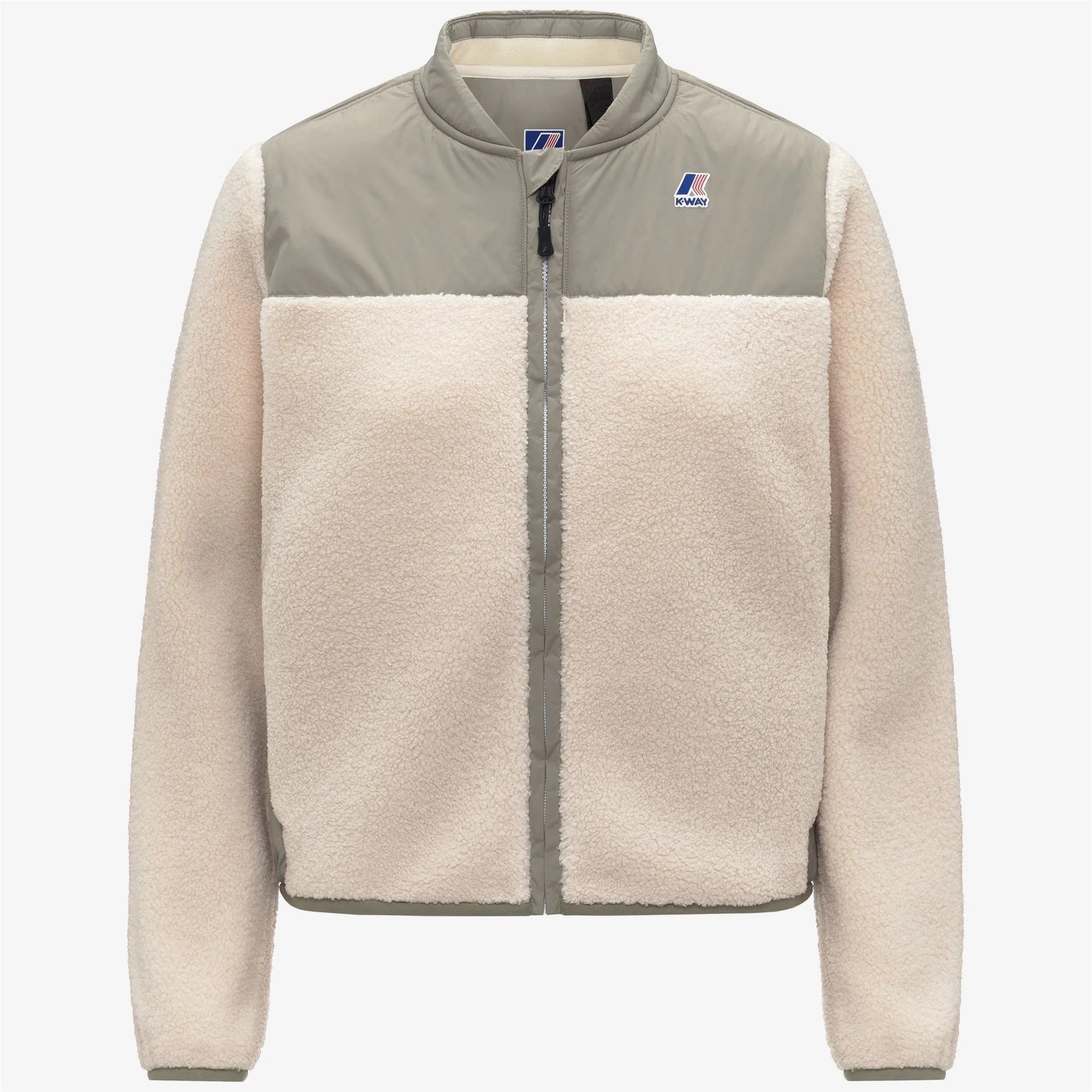 Bernardine is a women’s short jacket designed for transitional weather and early cold spells. Made from warm, soft sherpa-effect fabric with waterproof and breathable micro ripstop nylon inserts (100% recycled), it combines comfort and protection. The interior features lightweight PrimaLoft® padding, a recycled, polyester-based insulating fiber that provides low-bulk warmth. - Sherpa-effect fabric - Waterproof, water-repellent, windproof and breathable ripstop nylon inserts - Lightweight PrimaLoft® padding - Medium warmth rating - Bomber jacket collar with nylon outer layer - Zip fastening - Inner windproof flap - 2 side zip pockets - Adjustable drawcord hem - Regular fit - Colour-printed logo Features Description: Fleece, Jacket Gender: Woman Season: Fall, Winter Composition Shell Fabric B External: 100% Polyester Shell Fabric A External: 100% Recycled Nylon Style: K61343W - Color: B01