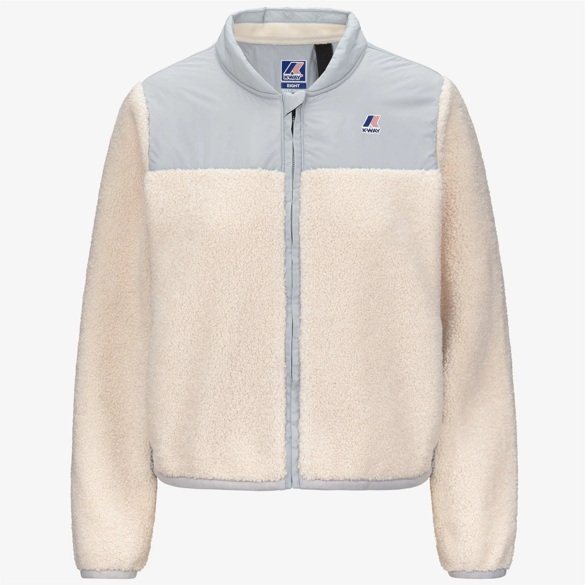 Grey Women's Fleece Jacket with Recycled Insulation Bernardine is a women’s short jacket designed for transitional weather and early cold spells. Made from warm, soft sherpa-effect fabric with waterproof and breathable micro ripstop nylon inserts (100% recycled), it combines comfort and protection. The interior features lightweight PrimaLoft® padding, a recycled, polyester-based insulating fiber that provides low-bulk warmth. - Sherpa-effect fabric - Waterproof, water-repellent, windproof and breathable ripstop nylon inserts - Lightweight PrimaLoft® padding - Medium warmth rating - Bomber jacket collar with nylon outer layer - Zip fastening - Inner windproof flap - 2 side zip pockets - Adjustable drawcord hem - Regular fit - Colour-printed logo Features Description: Fleece, Jacket Gender: Woman Season: Fall, Winter Composition Shell Fabric B External: 100% Polyester Shell Fabric A External: 100% Recycled Nylon Style: K61343W - Color: B00