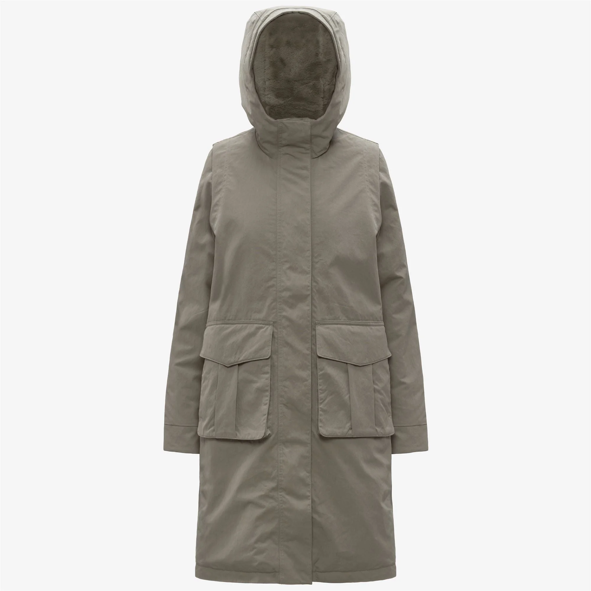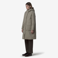 Green oak Women's Long Parka with Faux Fur and PrimaLoft Padding Brunil is a women’s long parka designed to complement an urban look, ideal for transitional seasons and early cold spells. Made from brushed cotton-blend fabric, it features lightweight PrimaLoft® padding and a partially lined faux fur interior for added warmth and comfort. With an enveloping hood and roomy patch pockets, it offers both protection and everyday functionality. - Brushed cotton-blend fabric - Lightweight eco-friendly PrimaLoft® padding - Partially lined with faux fur-effect synthetic fabric - Medium warmth rating - Adjustable drawcord hood - Double-slider zip fastening - Partial zip flap - Internal cuffs - 2 patch flap pockets - Regular fit - K-Way tape detail at the cuff Features Description: Jackets, Long Gender: Woman Season: Fall, Winter Composition External: 64% Cotton, 36% Recycled Nylon Padding: 100% Polyester Lining: 100% Polyester Style: K7136EW - Color: BCH