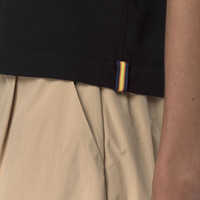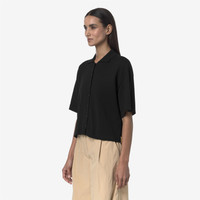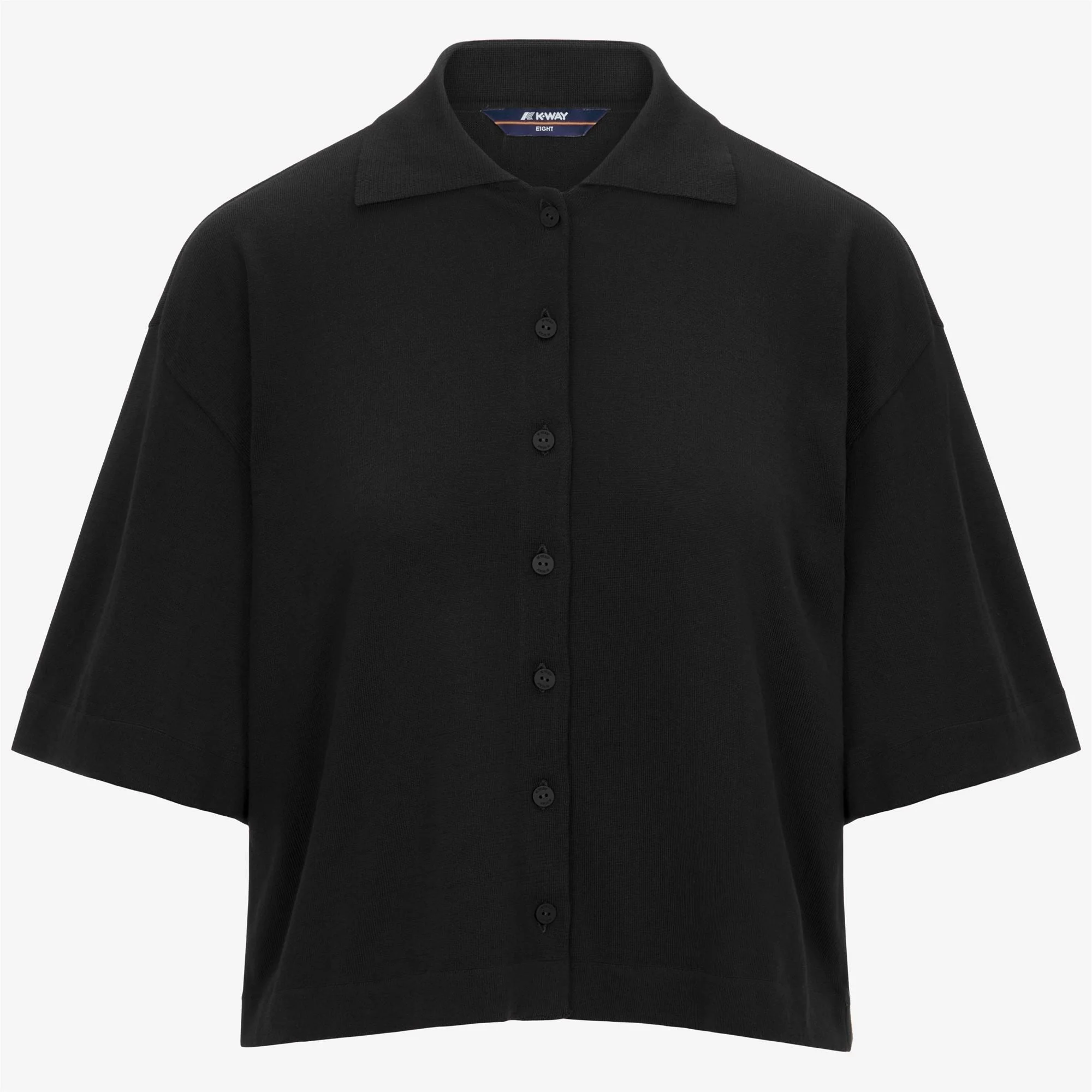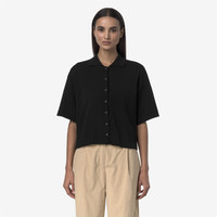 Grey Black Women's Cropped Knit Jacket with Polo Collar Carry is a women's kimono-sleeved knitted shirt with a classic, regular-fit silhouette, made from pure Egyptian cotton with a soft, smooth, anti-pilling yarn. This lightweight knitwear piece features a polo collar, front button fastening and three quarter-length sleeves, modernised by a slightly cropped, feminine cut. - Anti-pilling cotton yarn - Plain knit - Polo collar - Front button fastening - Regular fit - Striped logo on hem Features Description: KNITWEAR, Jacket Gender: Woman Season: Spring, Summer Composition Entire: 100% Cotton Style: K31477W - Color: USY