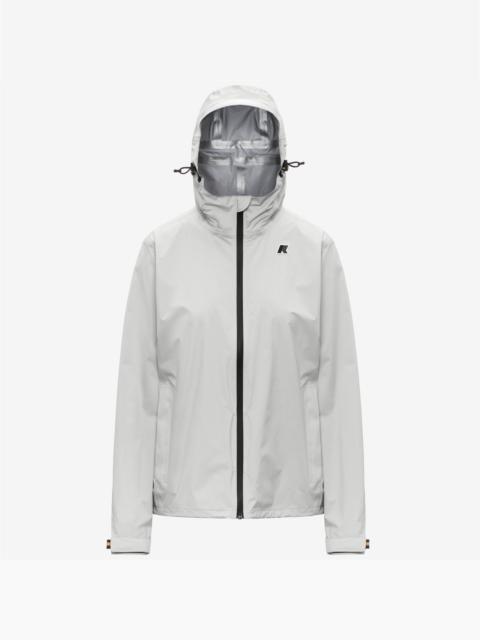 Charmain is a unisex jacket designed for travel comfort and functionality. Its ultra-light, three-layer ripstop fabric is waterproof, windproof, breathable and crease-proof: in full K-Way style, it can be packed in its integrated pocket for minimum suitcase or backpack bulk. - Ultra-light three-layer ripstop fabric: waterproof, water-repellent, windproof, breathable - DWR (Durable Water Repellent) treatment - Water resistance: 10000 mm water column - Breathability: 10000 g/sqm/24h - Packable - Heat-taped seams - Adjustable hood with reflective drawcord - Zip closure - Windproof inner flap - Rear ventilation cut-out - Elasticated cuffs with strap closure - 2 side zip pockets - Adjustable drawcord hem - Regular fit - Black and white silicone logo patch Features Description: Jackets, Mid Gender: Unisex Season: Spring, Summer, Fall, Winter Composition External: 18% Polyester, 48% Recycled Polyamide, 34% Poliuterano Termopla Style: K7137NW - Color: USY