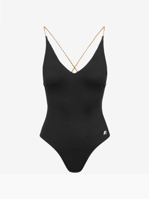 Black Grey Women's One-Piece Swimsuit with Braided Straps The Crosel one-piece swimsuit flaunts a sleek, feminine, V-neck silhouette. It is made from quick-dry technical fabric with an inner lining and white logo printed on the side. The back cross-over braided shoulder straps feature K-Way's signature colours. - Made from Lycra® - Lined interior - Braided shoulder straps - Regular fit - Printed logo Features Description: Bathing Suits, Swimsuit Gender: Woman Season: Spring, Summer Composition External: 22% Elastane, 78% Recycled Polyamide Lining: 100% Polyester Style: K71422W - Color: USY