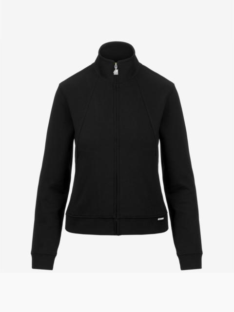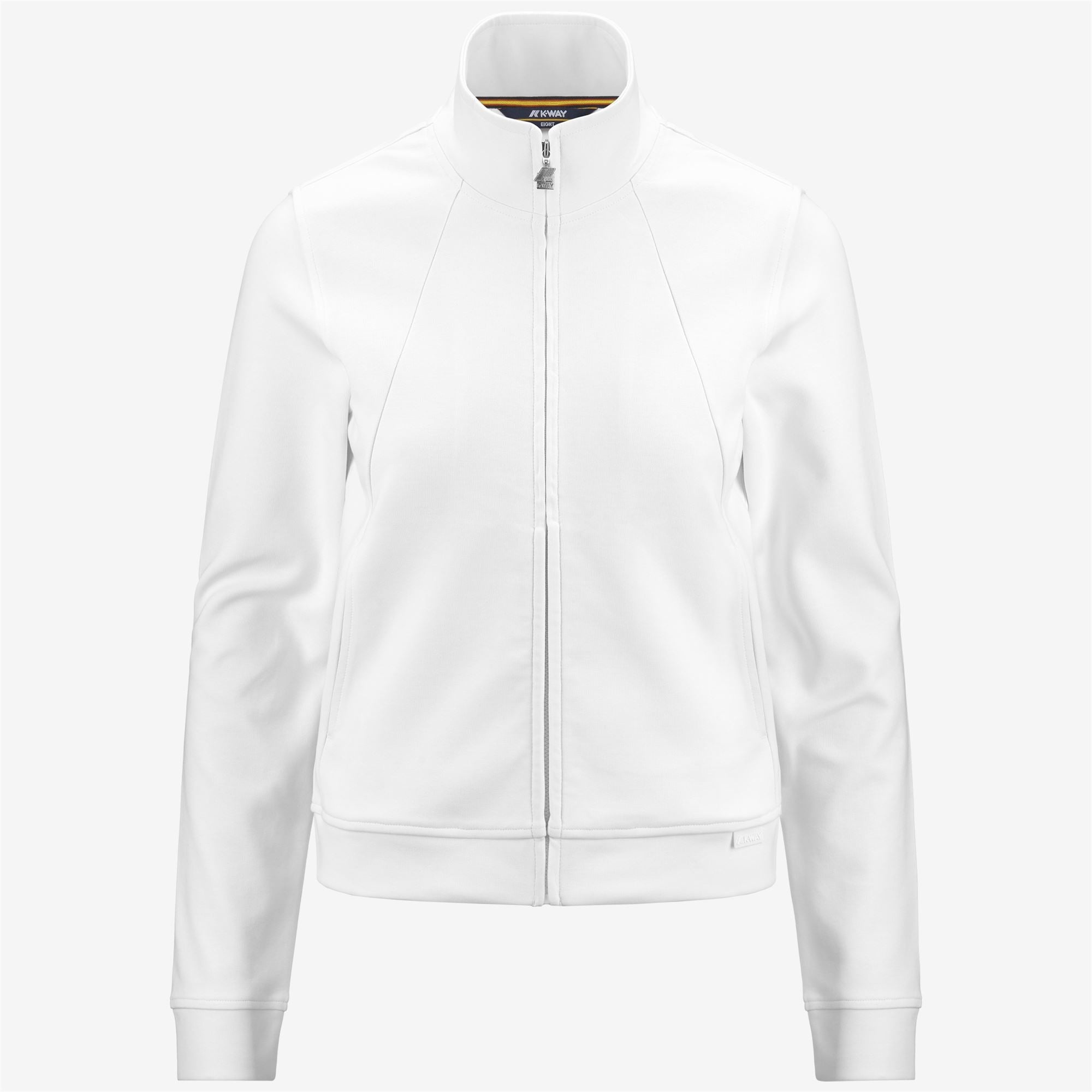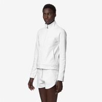 Grey White Women's Athleisure Fleece Jacket for City Wear Cyrielle is a women's sweatshirt with an athleisure style and a relaxed fit. Perfect for travel, sports, and leisure, it's made from soft technical interlock fabric with a high percentage of cotton, providing gentle flexibility. This high-neck sweatshirt features a zip fastening, convenient side pockets, and a minimalistic white K-Way logo detail on the bottom hem. - Stretch interlock fabric - Inset pockets on the front seams - Regular fit - Flag logo Features Description: Fleece, Jacket Gender: Woman Season: Spring, Summer Composition Entire: 80% Cotton, 6% Elastane, 14% Polyester Style: K81367W - Color: 001