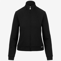Black Grey Women's Athleisure Fleece Jacket for City Wear Cyrielle is a women's sweatshirt with an athleisure style and a relaxed fit. Perfect for travel, sports, and leisure, it's made from soft technical interlock fabric with a high percentage of cotton, providing gentle flexibility. This high-neck sweatshirt features a zip fastening, convenient side pockets, and a minimalistic white K-Way logo detail on the bottom hem. - Stretch interlock fabric - Inset pockets on the front seams - Regular fit - Flag logo Features Description: Fleece, Jacket Gender: Woman Season: Spring, Summer Composition Entire: 80% Cotton, 6% Elastane, 14% Polyester Style: K81367W - Color: USY