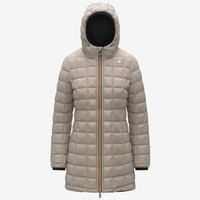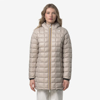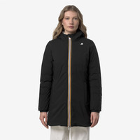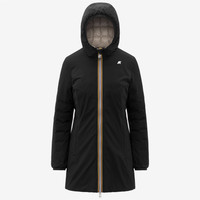 Black women's Reversible 3/4 Length Thermo Jacket with Down Padding The Denise women’s three-quarter jacket is K-Way’s creation for extremely chilly days. Its reversible design provides a 2-in-1 style, combining a smooth technical side with a contrast quilted nylon reverse. The inside is padded with down. - Waterproof, water-repellent, windproof and breathable eco-polyester - Windproof and breathable quilted nylon with down filling - Down padding - Ultra-warm - Reversible - Heat-taped seams - Adjustable hood with elastic cords - Zip fastening - Elasticated cuffs - 2 zip pockets - 2 snap button pockets - Slim fit - White silicone logo Features Description: Jackets, 3/4 LENGTH Gender: Woman Season: Fall, Winter Composition External: 24% Poliuretane, 76% Recycled Polyester Lining: 100% Recycled Nylon Padding: 90% Duck Down, 10% Duck Feather Style: K8134CW - Color: BC9