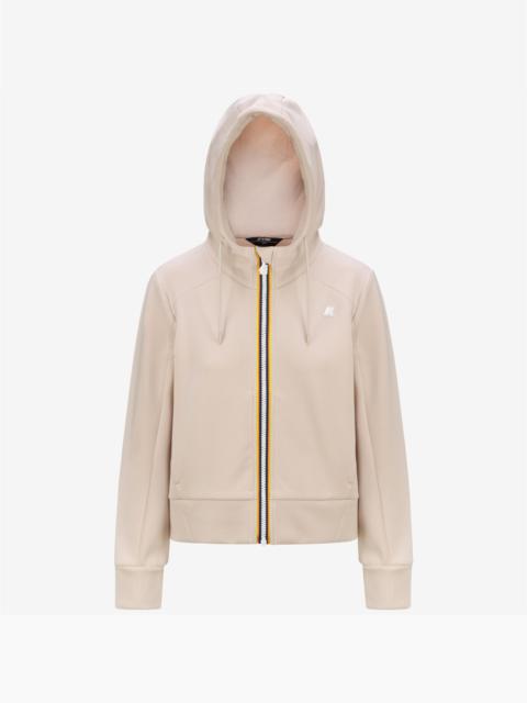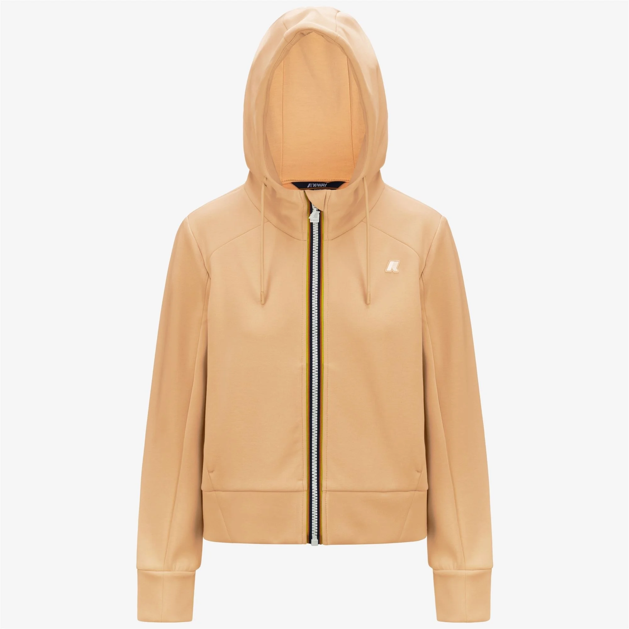 Beige Orange Women's Fleece Jacket for Warm Athleisure Wear Divine is a cropped sweatshirt for women designed for leisure time and sports. The style, with a regular fit and featuring full zip closure, adjustable hood and diagonal pockets, is made from technical interlock fabric with a smooth and soft feel, along with a strategic silhouette that provides a comfortable fit and unrestricted movements during the sports activity. This garment is ideal to round off athleisure outfits with a clean, essential appeal. - Stretch matte interlock fabric - Adjustable drawstring hood - Diagonal pockets - Ribbed bottom hem and cuffs - Regular fit - Zip closure - White silicone logo patch Features Description: Fleece, Jacket Gender: Woman Season: Spring, Summer, Fall, Winter Composition Entire: 4% Elastane, 81% Polyester, 15% Rayon Style: K2132CW - Color: W6I