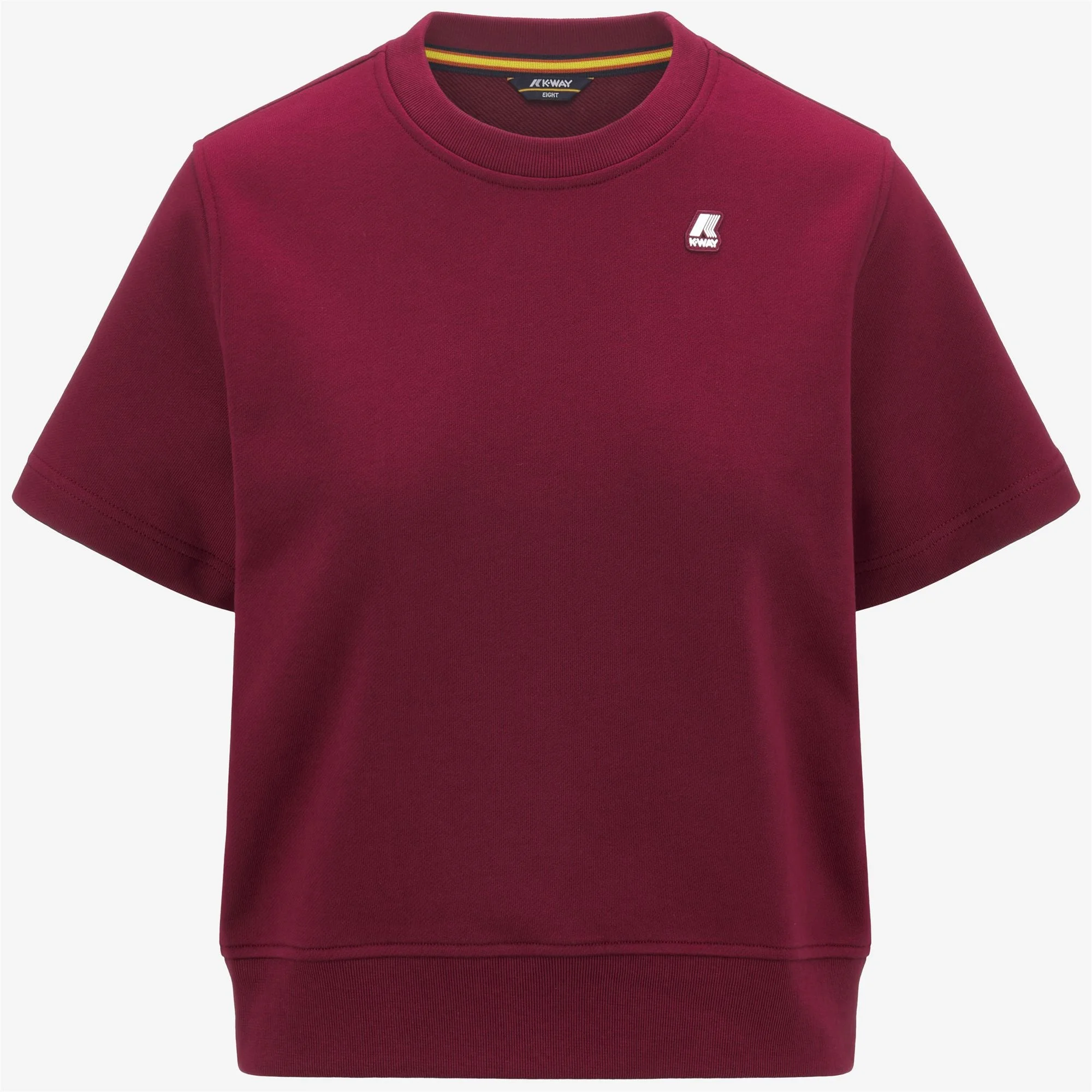 Dark Red Women's Casual T-Shirt with Soft Fleece Texture Emelette is a women's short-sleeved crewneck sweatshirt with a regular fit. Thanks to its soft, lightweight fleece texture, this garment has a relaxed look suitable for leisure and sports, confirmed by the ribbed crew neck and bottom hem. - Unbrushed fleece fabric - Crew neck - Short sleeves - Ribbed hems - Regular fit - White silicone logo patch " Features Description: T-Shirts & Top, T-Shirt Gender: Woman Season: Spring, Summer, Fall, Winter Composition Entire: 100% Cotton Style: K2131HW - Color: Q13