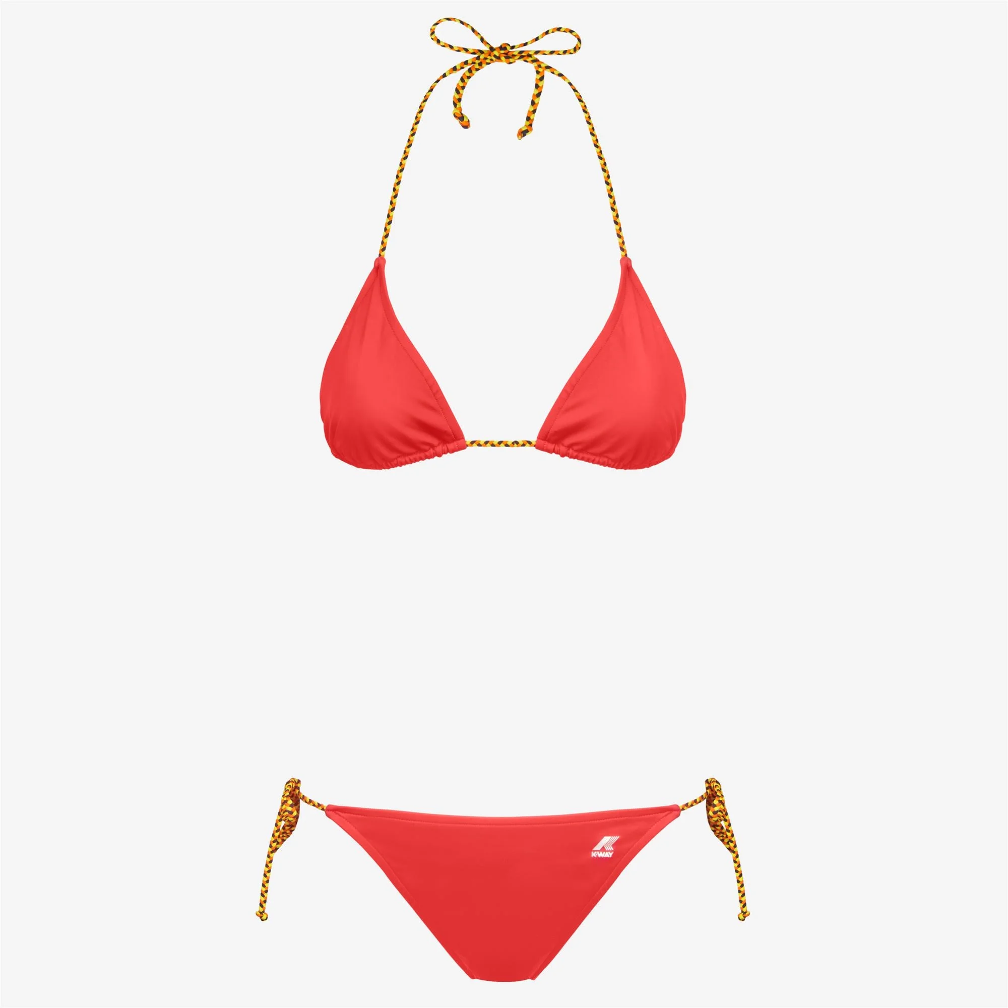 Berry Red Women's St Tropez Bikini with Quick-Dry Lycra The Etre bikini flaunts an ultra-feminine silhouette, updated with signature K-Way details. Made from quick-dry Lycra®, both the triangle top and brief bottoms fasten with woven ties in our iconic colours. - Made from Lycra® - Lined - Braided straps - Regular fit - Printed logo Features Description: Bathing Suits, Bikini Gender: Woman Season: Spring, Summer Composition External: 22% Elastane, 78% Recycled Polyamide Lining: 100% Polyester Style: K6116VW - Color: X5Y