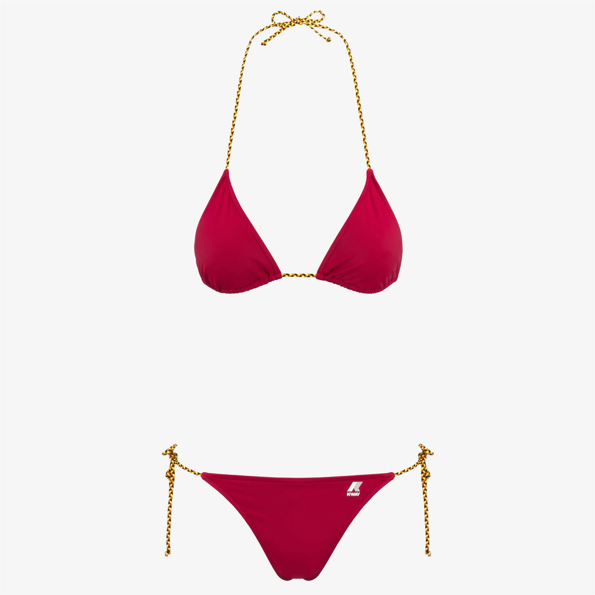 Ruby Red Women's St Tropez Bikini with Quick-Dry Lycra The Etre bikini flaunts an ultra-feminine silhouette, updated with signature K-Way details. Made from quick-dry Lycra®, both the triangle top and brief bottoms fasten with woven ties in our iconic colours. - Made from Lycra® - Lined - Braided straps - Regular fit - Printed logo Features Description: Bathing Suits, Bikini Gender: Woman Season: Spring, Summer Composition External: 22% Elastane, 78% Recycled Polyamide Lining: 100% Polyester Style: K6116VW - Color: V30