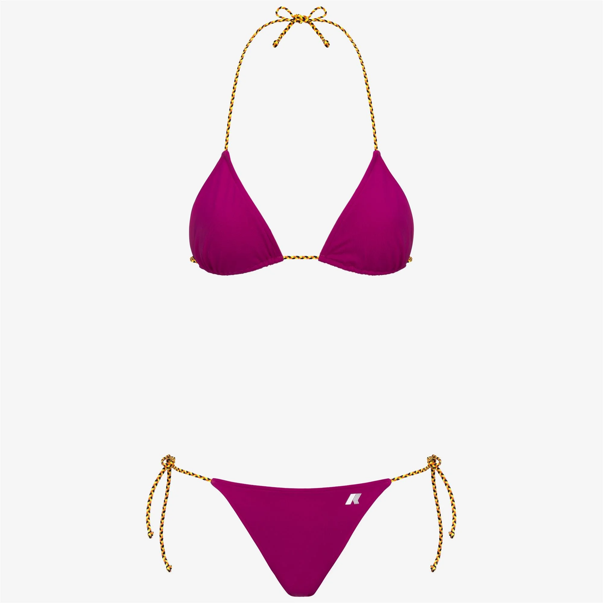 Fuchsia red Women's Quick-Dry Bikini with Braided Ties The Etre bikini flaunts an ultra-feminine silhouette. Both the triangle top and brief bottoms fasten with braided ties in K-Way signature colours. It is made from quick-dry technical fabric with an inner lining and white logo printed on the side. - Made from Lycra® - Lined interior - Braided shoulder straps - Regular fit - Printed logo Features Description: Bathing Suits, Bikini Gender: Woman Season: Spring, Summer Composition External: 22% Elastane, 78% Polyamide Lining: 25% Elastane, 75% Polyamide Style: K8134FW - Color: XHE