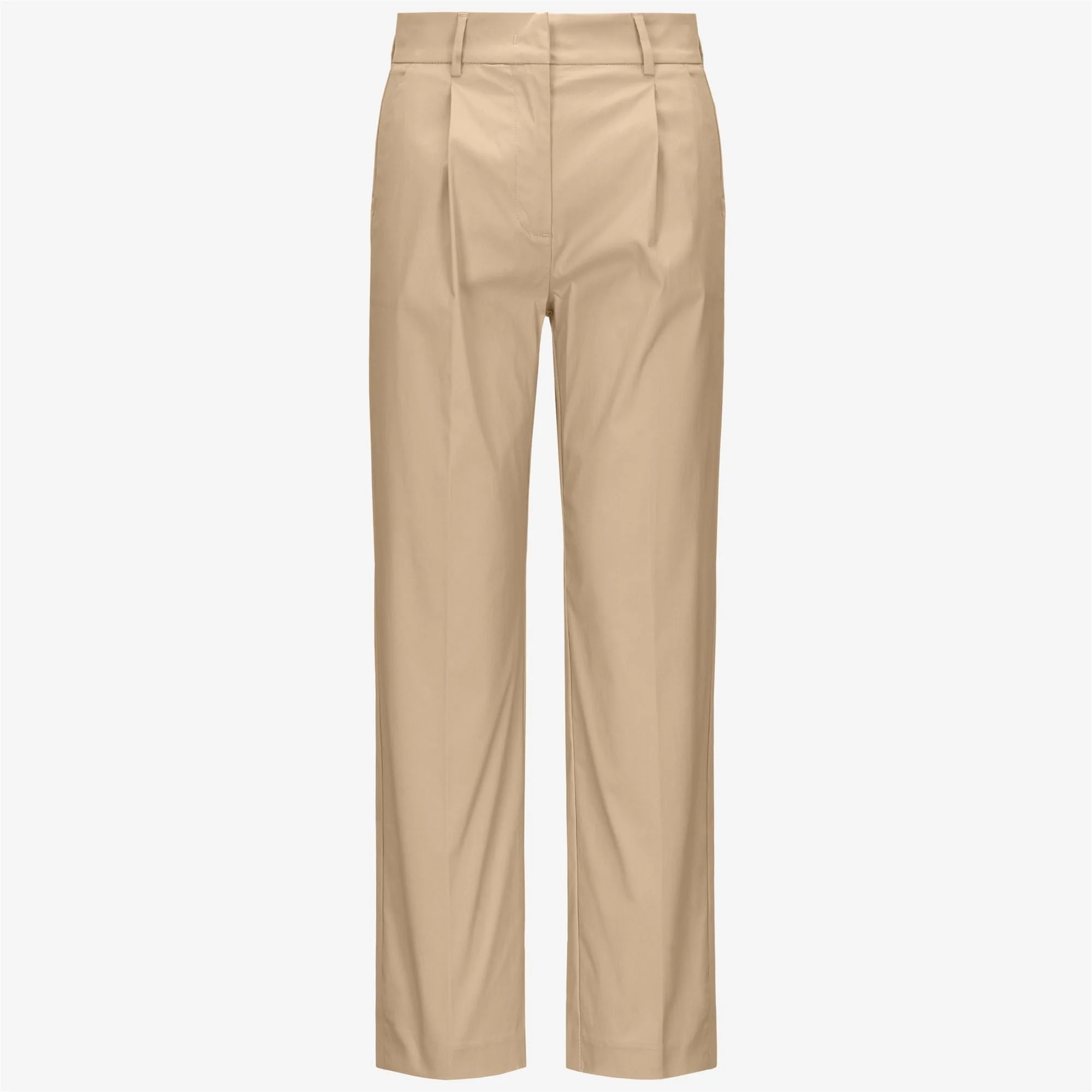 Beige Brown Women's Stretch Chino Pants for City Wear The Eyre women's gabardine trousers boast a versatile stretch-fit look. A comfortable, warm-weather essential, these trousers feature a straight-leg chino design with side pockets, front darts and a concealed zip and hook fastening. - Women's chino trousers - Technical stretch gabardine fabric - 2 welt pockets - Regular fit - K-Way tape detailing Features Description: Pants, CHINO Gender: Woman Season: Spring, Summer Composition Entire: 65% Cotton, 6% Elastane, 29% Polyamide Style: K61366W - Color: WBJ