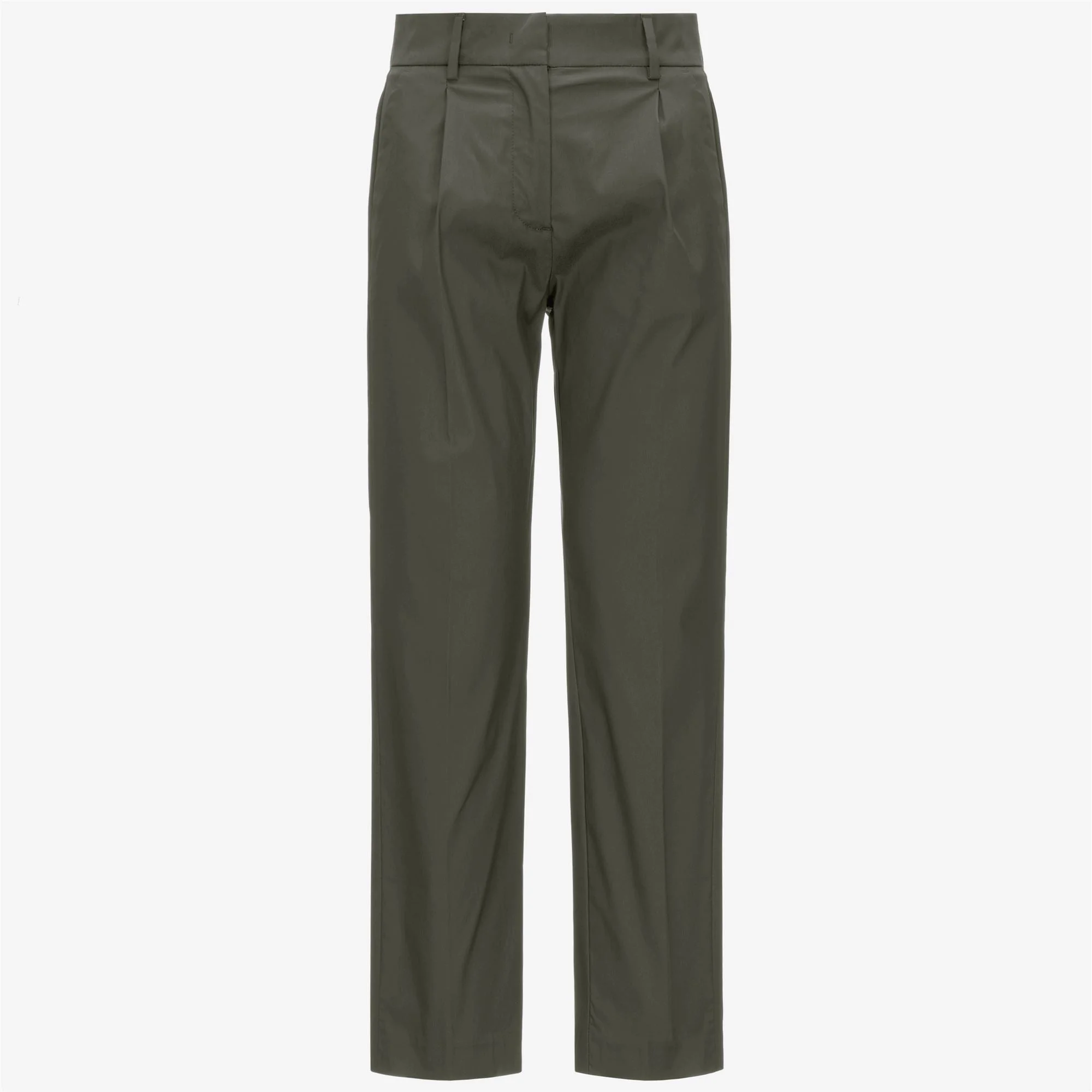 Lichen green Women's Chino Pants for City Wear The Eyre women's gabardine trousers boast a versatile stretch-fit look. A comfortable, warm-weather essential, these trousers feature a straight-leg chino design with side pockets, front darts and a concealed zip and hook fastening. - Women's chino trousers - Technical stretch gabardine fabric - 2 welt pockets - Regular fit - K-Way tape detailing Features Description: Pants, CHINO Gender: Woman Season: Spring, Summer Composition Entire: 65% Cotton, 6% Elastane, 29% Polyamide Style: K61366W - Color: V15