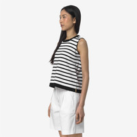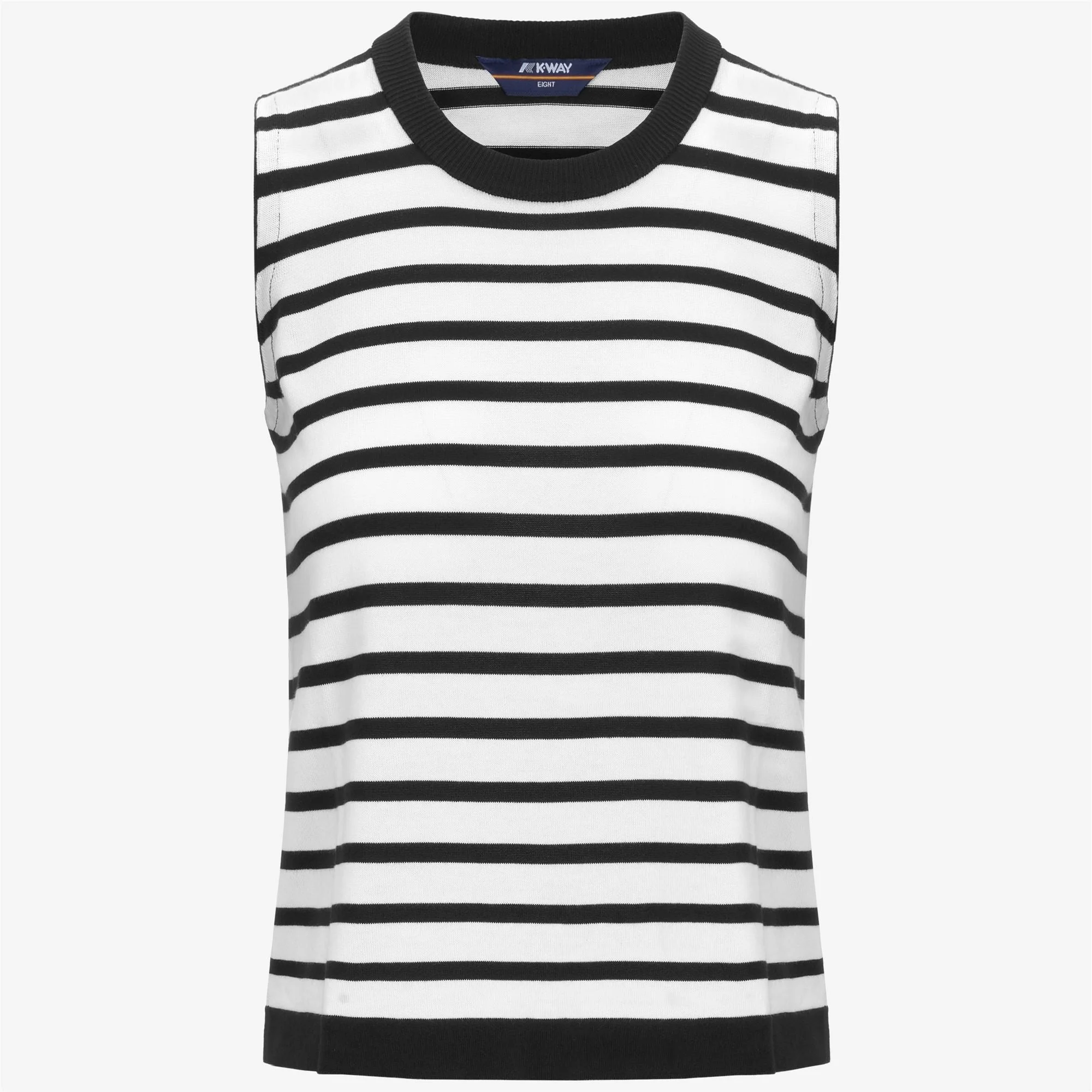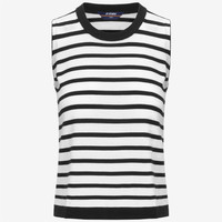 Grey striped Women's Summer Knit Vest in Pure Cotton Geri is a women's vest with a classic, regular-fit silhouette, made from pure Egyptian cotton with a soft, smooth, anti-pilling yarn. This lightweight vest features a timeless crew-neck design with a striped pattern, modernised by a slightly cropped, feminine cut. - Anti-pilling cotton yarn - Plain knit - Ribbed crew neck - Regular fit - Striped logo on hem Features Description: KNITWEAR, Vest Gender: Woman Season: Spring, Summer Composition Entire: 100% Cotton Style: K2135NW - Color: B0I
