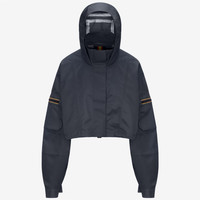 Blue Women's Short Water-Resistant Jacket with Insulating Membrane Jaxie is an ultra-cropped women’s jacket that reimagines the classic parka with bold proportions and a satin-finish texture. Designed for transitional seasons, it’s made from recycled water-resistant satin with an internal insulating membrane for added protection. The silhouette features an adjustable hood and hem, a zip closure with a press-stud storm flap, and a distinctive twist on K-Way®'s iconic ‘packable’ pocket, repositioned on the voluminous balloon sleeves with a visible zip in the brand’s signature colours. - Two-layer construction - Recycled satin technical fabric with water-resistant finish - Water resistance: 5,000 mm water column - Breathability: 5,000 g/sqm/24h - Internal insulating membrane - Silver-coloured heat-taped seams - Adjustable hood and hem with elastic drawcord and stoppers - Double-slider zip closure with press studs and storm flap - Adjustable cuffs with press studs - Zipped patch pockets on the sleeves - Internal smartphone pocket - Oversized fit Features Description: Jackets, Short Gender: Woman Season: Fall, Winter Composition External: 16% Poliuretane, 84% Recycled Polyamide Style: K8142DW - Color: XCT