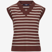 Beige red Women's Striped Cotton Knit Vest for City Wear Jener is a women's vest with a classic, regular-fit silhouette, made from pure Egyptian cotton with a soft, smooth, anti-pilling yarn. This lightweight vest features a timeless V-neck design with a striped pattern, modernised by a slightly cropped, feminine cut. - Anti-pilling cotton yarn - Plain knit - V-neck - Single fold sleeve and bottom hem - Regular fit - Striped logo on hem Features Description: KNITWEAR, Vest Gender: Woman Season: Spring, Summer Composition Entire: 100% Cotton Style: K31478W - Color: B0B