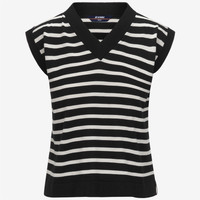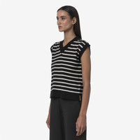 Beige grey Women's Striped Cotton Vest for City Wear Jener is a women's vest with a classic, regular-fit silhouette, made from pure Egyptian cotton with a soft, smooth, anti-pilling yarn. This lightweight vest features a timeless V-neck design with a striped pattern, modernised by a slightly cropped, feminine cut. - Anti-pilling cotton yarn - Plain knit - V-neck - Single fold sleeve and bottom hem - Regular fit - Striped logo on hem Features Description: KNITWEAR, Vest Gender: Woman Season: Spring, Summer Composition Entire: 100% Cotton Style: K31478W - Color: B0M