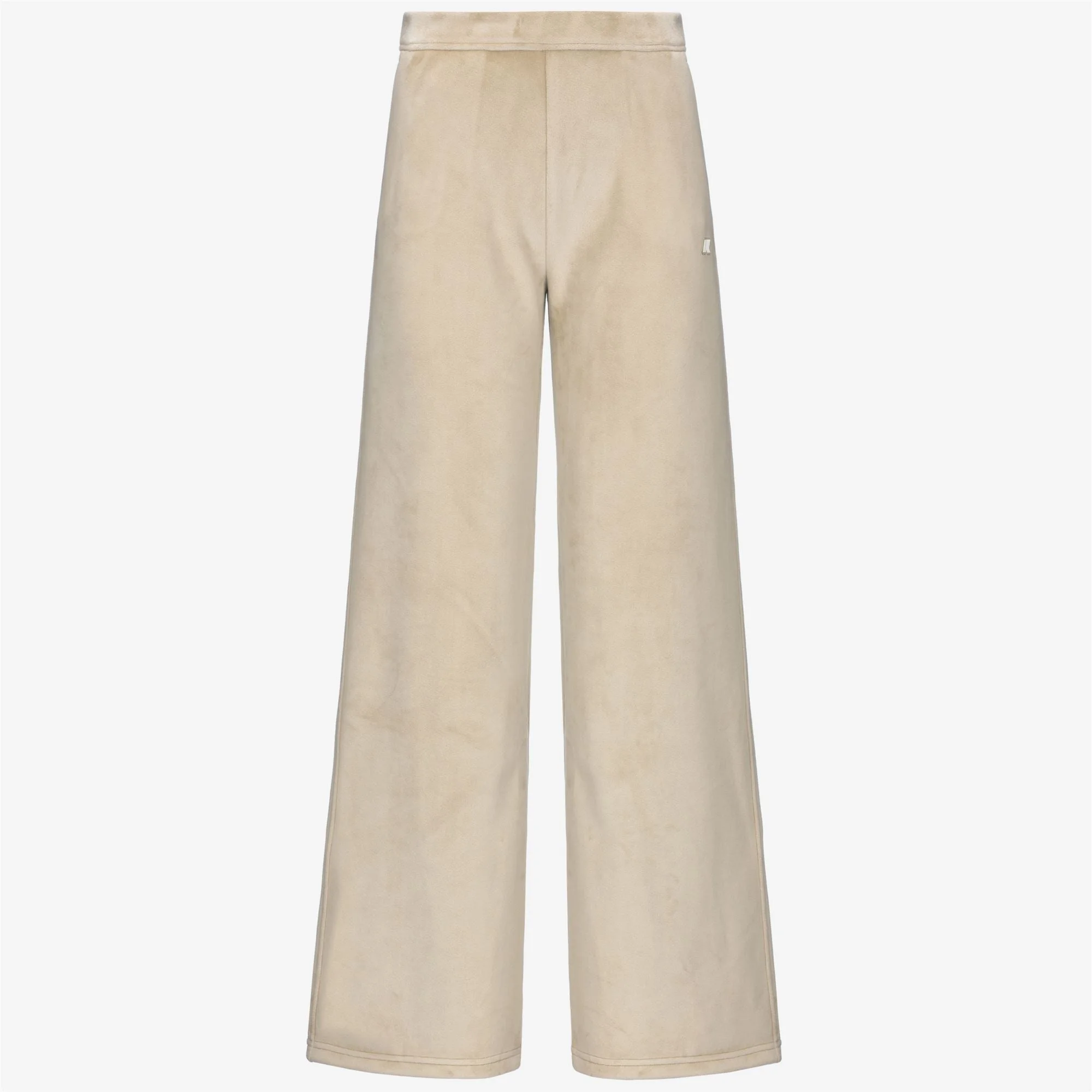 Beige brown Women's Cozy Velour Sport Trousers with Adjustable Waistband The Jenny women's pants are distinguished by their soft, cozy design with a lifestyle appeal and are crafted from a combination of different colors and fabrics. The exterior features smooth, velvety fleece with a subtle shine, while the interior is lined with sherpa-effect fleece, offering medium warmth suitable for mid-season wear. These flare-cut pants highlight the feminine silhouette with a fitted leg that flares at the bottom and an adjustable drawstring waistband. - Two-layer fleece fabric - First layer: lightweight, smooth fleece - Second layer: sherpa-effect fleece - Medium warmth level - Non-reversible - Adjustable waistband - Welt pockets - Regular fit - White silicone logo Features Description: Pants, Sport Trousers Gender: Woman Season: Fall, Winter Composition External: 100% Polyester Lining: 5% Elastane, 95% Polyester Style: K7128CW - Color: ATS