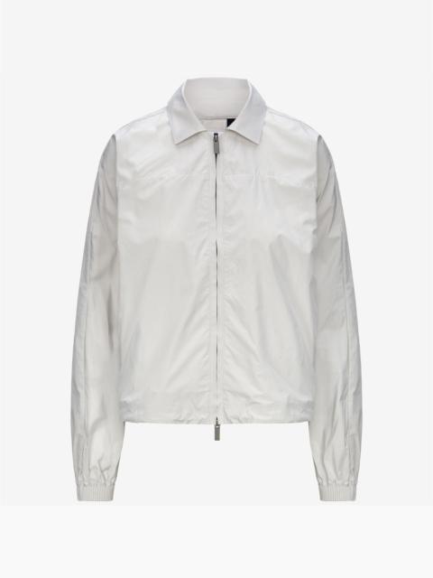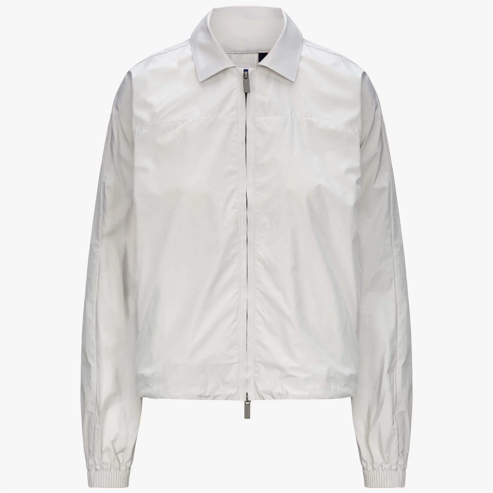 Beige Grey Women's Short Spring Jacket with Adjustable Waist Jordin is a women's short jacket, a spring outerwear piece made from unlined silky soft-handle microfibre, which has a delicate airy appeal. This jacket, with a classic collar and elasticated cuffs, features feminine elements such as wide sleeves and functional details such as ventilation eyelets and an adjustable drawstring at the waist. - Waterproof, peachy-like texture nylon blend - Welt pockets - Inner pocket - Adjustable bottom hem - Elasticated cuffs - Regular fit - Striped logo on the cuff Features Description: Jackets, Short Gender: Woman Season: Spring, Summer Composition Entire: 37% Nylon, 63% Polyester Style: K7132UW - Color: 634