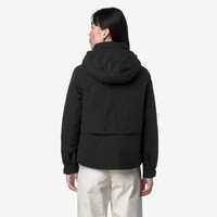 Black Women's Short A-Line Jacket with PrimaLoft Insulation Kali is a women’s short A-line jacket, designed for transitional seasons and early cold spells. Made from a water-repellent, windproof nylon-cotton blend and padded with PrimaLoft® insulation, it offers reliable protection in unpredictable weather. Details include a covered zip fastening, an enveloping high collar, a detachable hood, and generous pockets. - Water-repellent and windproof nylon-cotton blend fabric - Medium-weight PrimaLoft® padding - Herringbone quilted lining - Glossy nylon lining - Medium/high warmth rating - High collar - Detachable hood - Flared, adjustable hem - Zip fastening with protective flap - Double-entry patch pockets - 2 inner pockets with concealed zip - Triple-needle stitching - Regular fit - White silicone logo patch Features Description: Jackets, Short Gender: Woman Season: Fall, Winter Composition External: 30% Cotton, 70% Nylon Lining: 100% Nylon Padding: 100% Recycled Polyester Style: K4136ZW - Color: USY