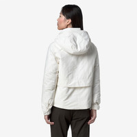 Kali is a women’s short A-line jacket, designed for transitional seasons and early cold spells. Made from a water-repellent, windproof nylon-cotton blend and padded with PrimaLoft® insulation, it offers reliable protection in unpredictable weather. Details include a covered zip fastening, an enveloping high collar, a detachable hood, and generous pockets. - Water-repellent and windproof nylon-cotton blend fabric - Medium-weight PrimaLoft® padding - Herringbone quilted lining - Glossy nylon lining - Medium/high warmth rating - High collar - Detachable hood - Flared, adjustable hem - Zip fastening with protective flap - Double-entry patch pockets - 2 inner pockets with concealed zip - Triple-needle stitching - Regular fit - White silicone logo patch Features Description: Jackets, Short Gender: Woman Season: Fall, Winter Composition External: 30% Cotton, 70% Nylon Lining: 100% Nylon Padding: 100% Recycled Polyester Style: K4136ZW - Color: X42