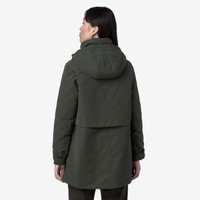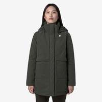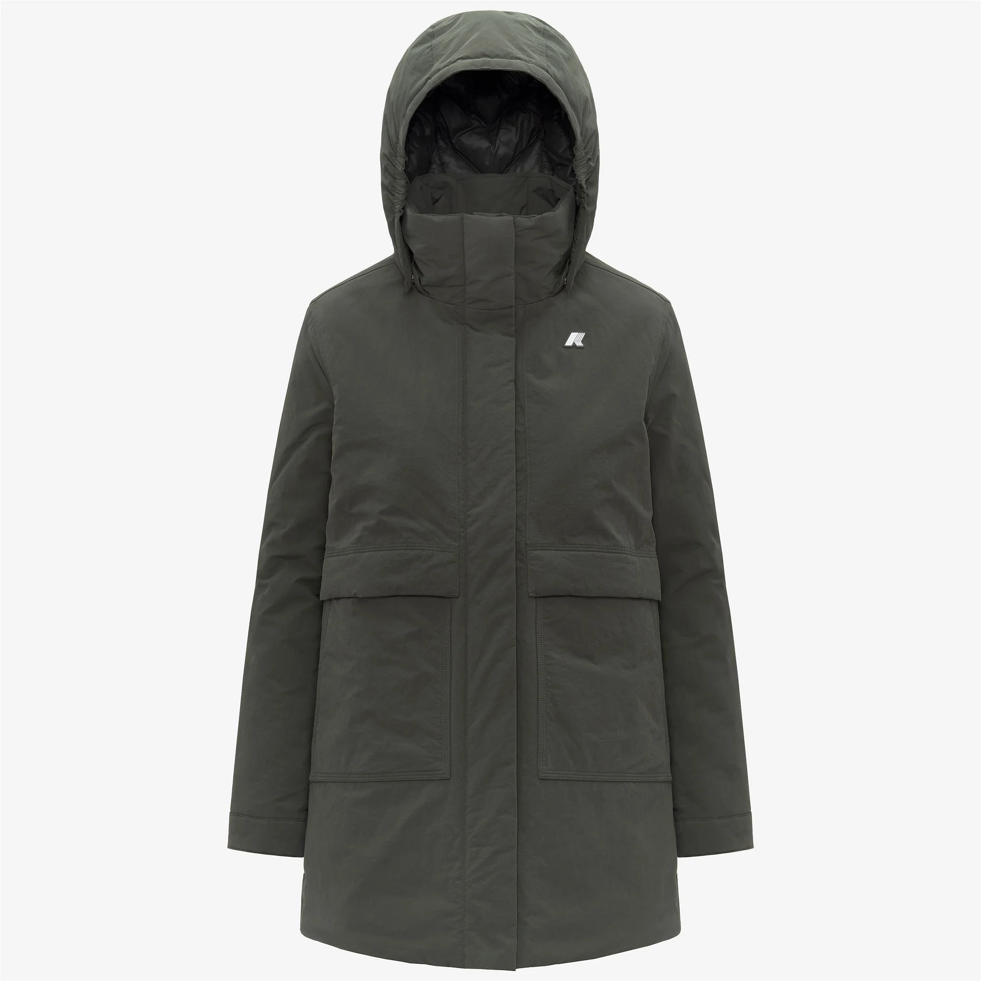 Green women's 3/4 Length A-Line Jacket with Hood and Pockets Kalima is a women’s medium-length A-line jacket, designed for transitional seasons and early cold spells. Made from a water-repellent, windproof nylon-cotton blend and padded with PrimaLoft® insulation, it offers reliable protection in unpredictable weather. Details include a covered zip fastening, an enveloping high collar, a detachable hood, and generous pockets. - Water-repellent and windproof nylon-cotton blend fabric - Medium-weight PrimaLoft® padding - Herringbone quilted lining - Glossy nylon lining - Medium/high warmth rating - High collar - Detachable hood - Flared, adjustable hem - Zip fastening with protective flap - Double-entry patch pockets - 2 inner pockets with concealed zip - Triple-needle stitching - Regular fit - White silicone logo patch Features Description: Jackets, 3/4 LENGTH Gender: Woman Season: Fall, Winter Composition External: 30% Cotton, 70% Nylon Lining: 100% Nylon Padding: 100% Recycled Polyester Style: K41461W - Color: WMR