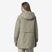 Kalima is a women’s medium-length A-line jacket, designed for transitional seasons and early cold spells. Made from a water-repellent, windproof nylon-cotton blend and padded with PrimaLoft® insulation, it offers reliable protection in unpredictable weather. Details include a covered zip fastening, an enveloping high collar, a detachable hood, and generous pockets. - Water-repellent and windproof nylon-cotton blend fabric - Medium-weight PrimaLoft® padding - Herringbone quilted lining - Glossy nylon lining - Medium/high warmth rating - High collar - Detachable hood - Flared, adjustable hem - Zip fastening with protective flap - Double-entry patch pockets - 2 inner pockets with concealed zip - Triple-needle stitching - Regular fit - White silicone logo patch Features Description: Jackets, 3/4 LENGTH Gender: Woman Season: Fall, Winter Composition External: 30% Cotton, 70% Nylon Lining: 100% Nylon Padding: 100% Recycled Polyester Style: K41461W - Color: 633
