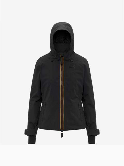 Labresse is a women’s ski jacket designed for a sporty lifestyle or moderate mountain activities. Made from a waterproof two-layer fabric and padded with warm, lightweight, quick-drying PrimaLoft insulation, it offers reliable protection against cold and moisture in a practical, functional design. - Two-layer waterproof and breathable fabric - Waterproof rating: 20000 mm water column - Breathability: 20000 g/m2/24h - PrimaLoft padding - Quilted polyester lining - High warmth rating - Heat-taped seams - Adjustable hood with elastic drawcord - Underarm ventilation zip openings - Waterproof zip fastening with storm flap - Inner windproof flap - Internal cuffs and adjustable sleeve closures - Welt outer pockets - Ski pass pocket on lower sleeve - Inner snow skirt at the waist - Mesh inner pockets - Inner zip pocket - Regular fit - Black silicone logo patch Features Description: Jackets, Mid Gender: Woman Season: Fall, Winter Composition External: 100% Polyester Lining: 100% Polyester Padding: 100% Recycled Polyester Style: K5123XW - Color: 633