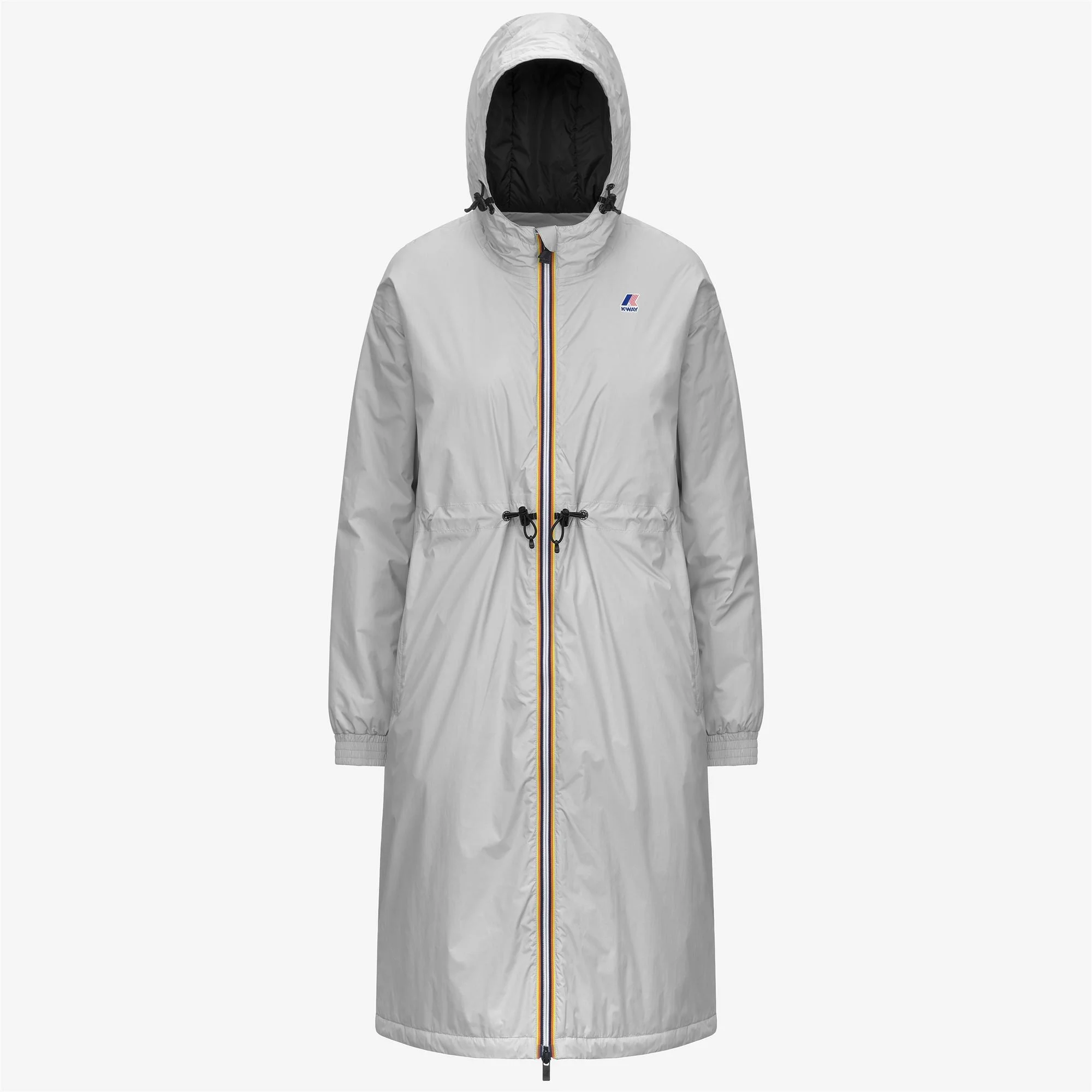 Grey Women's 3/4 Length Waterproof Jacket with PrimaLoft Padding Delia is a women’s long jacket designed for mid-season wear. Made from 100% recycled, water-resistant and breathable micro ripstop nylon, it combines a sporty, essential look with an adjustable waist that contours the silhouette. The interior features lightweight PrimaLoft® padding: a recycled, polyester-based insulating fiber that offers warmth without bulk. - Waterproof, water-repellent, windproof and breathable ripstop nylon fabric - DWR (Durable Water Repellent) treatment - Waterproof rating: 10000 mm water column - Breathability: 10000 g/m2/24h - Lightweight PrimaLoft® padding - Packable - Heat-taped seams - Adjustable hood with elastic drawcord - Zip fastening - Inner windproof flap - Elasticated cuffs - 2 zip pockets - Inner pocket - Adjustable waist with elastic drawcord - Regular fit - Colour-printed logo Features Description: Jackets, 3/4 LENGTH Gender: Woman Season: Spring, Summer, Fall, Winter Composition External: 100% Recycled Nylon Lining: 100% Nylon Padding: 100% Recycled Polyester Style: K8132YW - Color: B31