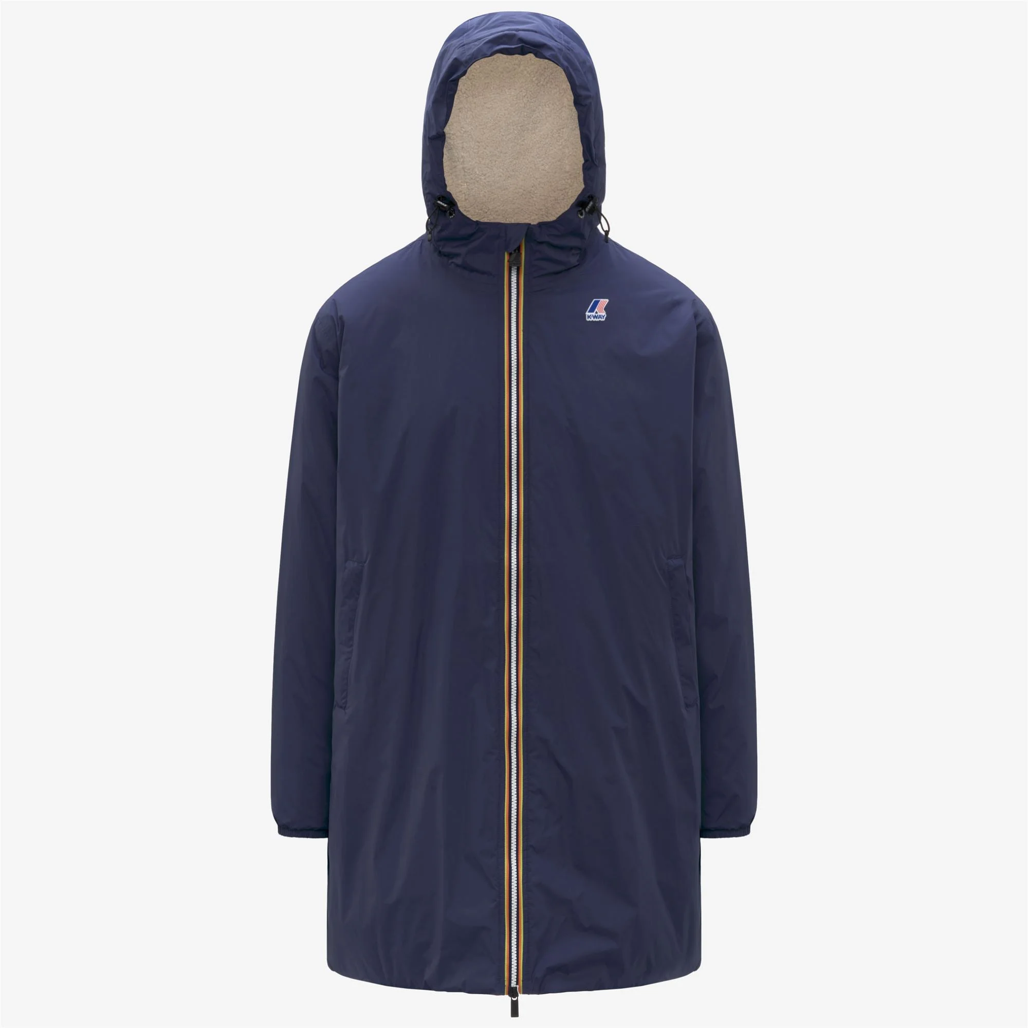 Deep blue Unisex 3/4 Length Waterproof Jacket with Sherpa Lining Eiffel is the unisex raincoat dedicated to the start of the chilly winter season. The design fuses superior functionality with distinctive graphic details, such as multicoloured striped tape on the zip. Crafted from nylon ripstop, this style is lined in sherpa fabric, updated to ensure an even softer feel against the skin. - Waterproof, water-repellent, windproof and breathable nylon ripstop - Sherpa lining - Medium-weight synthetic padding - Heat-taped seams - Adjustable hood with elastic cords - Zip fastening - Inner wind flap - Elasticated cuffs - 2 zip pockets - Regular fit - Printed coloured logo Features Description: Jackets, 3/4 LENGTH Gender: Unisex Season: Fall, Winter Composition External: 100% Recycled Nylon Padding: 100% Recycled Polyester Lining: 100% Polyester Style: K21516W - Color: 867