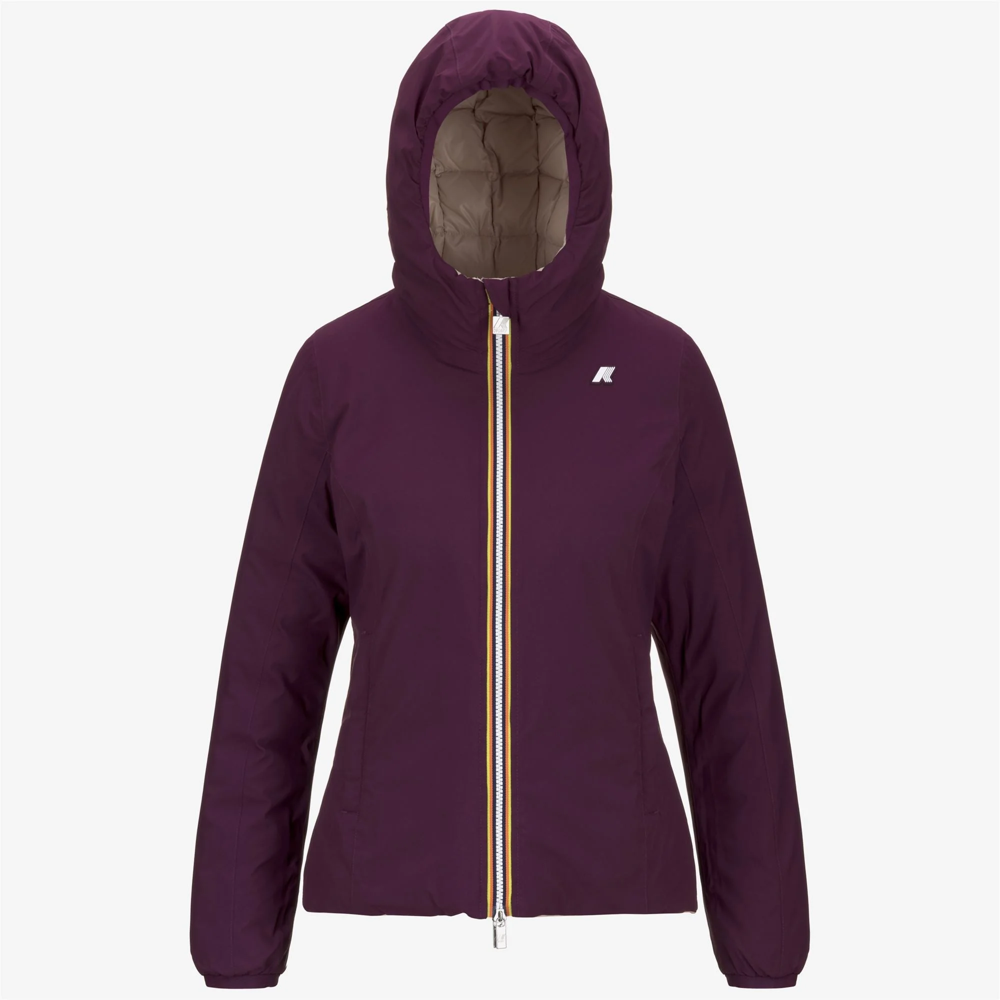 Violet Women's Reversible Insulated Short Jacket for Extreme Cold Designed for extreme winter temperatures whilst being kind to the planet, the women’s Lily short jacket is insulated with Primaloft padding: a highly insulating recycled fibre. Its reversible construction combines a smooth technical side with a contrast quilted nylon reverse. The hood, pockets, zip fastening and storm flap add an ultra-functional touch for maximum protection from the cold. - Waterproof, water-repellent, windproof and breathable eco-polyester - Windproof and breathable quilted nylon with down filling - PrimaLoft padding - Ultra-warm - Reversible - Heat-taped seams - Adjustable hood with elastic cords - Zip fastening - Elasticated cuffs - 2 zip pockets - 2 snap button pockets - Slim fit - White silicone logo Features Description: Jackets, Short Gender: Woman Season: Fall, Winter Composition External: 24% Poliuretane, 76% Recycled Polyester Padding: 90% Duck Down, 10% Duck Feather Lining: 100% Recycled Nylon Style: K8127XW - Color: AUO
