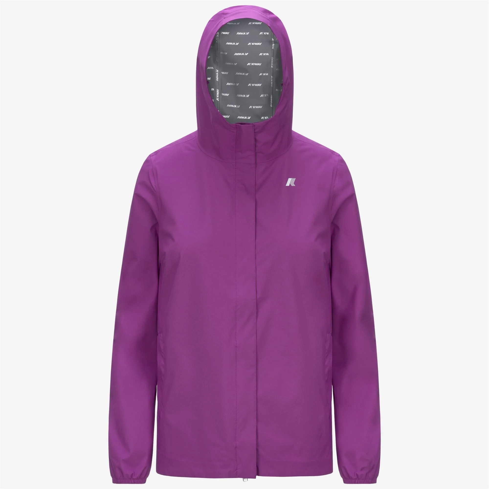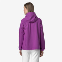 Violet Women's Mid-Length Waterproof Jacket with Stretch Fabric Marguerite is a women's medium-length jacket, perfect for transitional seasons. It's crafted from stretch technical fabric that allows for unrestricted movement while providing rain and wind protection, with water resistance up to 10000 mm. The interior is lined with an insulating membrane with all-over silver-tone K-Way lettering print. Functional details, such as zipped pockets, a wrap-around adjustable hood, and elasticated cuffs and hem ensure an easy, comfortable fit. - Waterproof, windproof and breathable stretch polyester fabric - DWR (Durable Water Repellent) treatment - Water resistance: 10000 mm water column - Logo-printed interior membrane - Heat-taped seams - Adjustable drawstring hood - Flap-covered zip fastening - Elasticated cuffs - 2 zipped pockets - Regular fit - White printed logo Features Description: Jackets, Mid Gender: Woman Season: Spring, Summer, Fall, Winter Composition Entire: 24% Poliuretane, 76% Recycled Polyester Style: K31382W - Color: 521