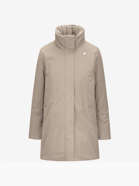 Black olive Women's Mid-length Warm Jacket with Hood Marla is a women's three-quarter lengtha jacket that interprets classic functional and urban outerwear in an elegant and feminine way. This jacket features the ability to adjust the side openings with practical snap buttons invisible from the outside, allowing the garment to transition from classic and simple to feminine and eye-catching. Its integrated hood in the high collar, which is easy to extract in case of sudden rain, adds additional practicality. A medium degree of warmth suitable for autumn and early winter is provided by the synthetic fiber padding. - Zip with double puller - Wid and Waterproof external Fabric - Shiny lining - Low weight padding - Medium warmth grade - Heat-taped seams - Front Opening with zipper, hidden by a covering flap - Hodden gaiter on cuffs - 2 frontal high pocket with snap closure - Regular Fitting - White silicon Logo Features Description: Jackets, Mid Gender: Woman Season: Fall, Winter Composition External: 8% Elastane, 92% Nylon Lining: 100% Polyester Padding: 100% Polyester Style: K7125LW - Color: XRG