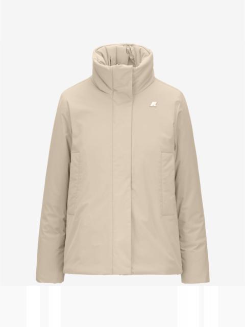 Marlette is a women's short jacket that interprets the classic functional and urban outerwear in an elegant and feminine way. This jacket features the possibility to modulate the openings on the sides with practical snap buttons invisible on the outside, thanks to which it is possible to make the garment from classic and simple to feminine and eye-catching. Its integrated hood in the high collar, which is easy to extract in case of sudden rain, gives the garment additional practicality. A medium degree of warmth suitable for autumn and early winter is provided by the synthetic fiber padding. - Zip with double puller - Wid and Waterproof external Fabric - Shiny lining - Low weight padding - Medium warmth grade - Heat-taped seams - Front Opening with zipper, hidden by a covering flap - Hodden gaiter on cuffs - 2 frontal high pocket with snap closure - Regular Fitting - White silicon Logo Features Description: Jackets, Short Gender: Woman Season: Fall, Winter Composition External: 8% Elastane, 92% Nylon Lining: 100% Recycled Nylon Padding: 100% Polyester Style: K7125KW - Color: XP2