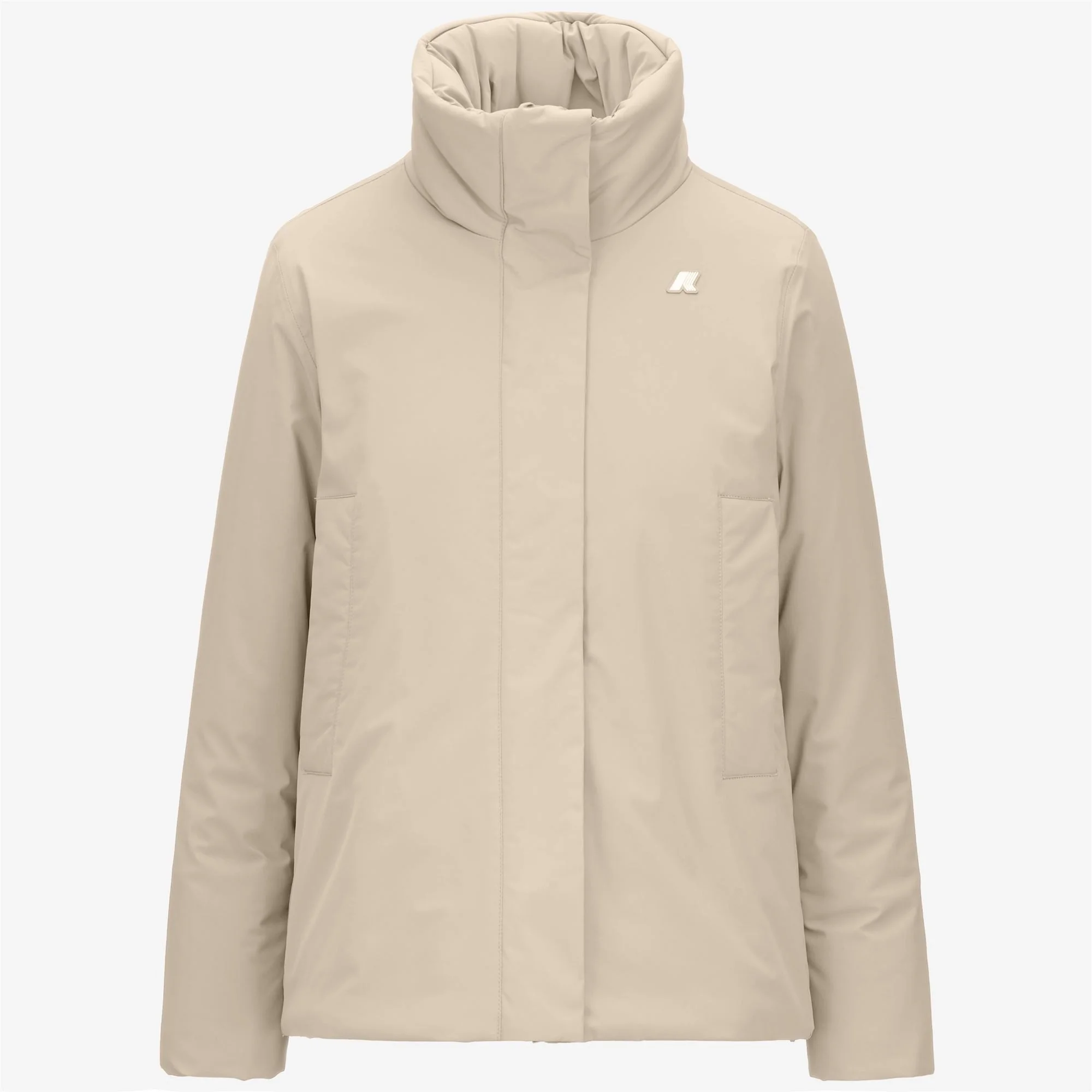 Beige Brown Women's Elegant Short Warm Jacket with Hood Marlette is a women's short jacket that interprets the classic functional and urban outerwear in an elegant and feminine way. This jacket features the possibility to modulate the openings on the sides with practical snap buttons invisible on the outside, thanks to which it is possible to make the garment from classic and simple to feminine and eye-catching. Its integrated hood in the high collar, which is easy to extract in case of sudden rain, gives the garment additional practicality. A medium degree of warmth suitable for autumn and early winter is provided by the synthetic fiber padding. - Zip with double puller - Wid and Waterproof external Fabric - Shiny lining - Low weight padding - Medium warmth grade - Heat-taped seams - Front Opening with zipper, hidden by a covering flap - Hodden gaiter on cuffs - 2 frontal high pocket with snap closure - Regular Fitting - White silicon Logo Features Description: Jackets, Short Gender: Woman Season: Fall, Winter Composition External: 8% Elastane, 92% Nylon Lining: 100% Recycled Nylon Padding: 100% Polyester Style: K7125KW - Color: 864