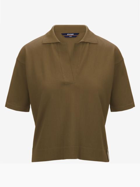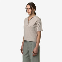 Beige Grey Women's Knit Polo Shirt for City Wear Marlhes is a short-sleeved women's polo shirt with a classic design and a regular fit, crafted from anti-pilling Egyptian cotton yarn known for its soft and smooth texture. This lightweight knitwear piece is characterized by its slightly cropped, feminine cut and features a polo collar with a button placket, and single fold hems. - Anti-pilling cotton yarn - Plain knit - Polo collar - Regular fit - Striped logo on hem Features Description: KNITWEAR, Polo Gender: Woman Season: Spring, Summer Composition Entire: 100% Cotton Style: K4123RW - Color: 634