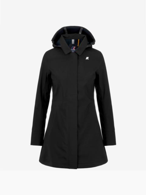 Black Grey Women's 3/4 Length Waterproof Jacket with Detachable Hood Mathy reinterprets the iconic lines of the trench coat with functional yet elegant details. Its slim-fit silhouette is elevated with a shirt collar and detachable hood: handy in the event of sudden showers. This garment is characterised by an unusual triple-layer construction, comprising a polyester outer layer, an insulating inner membrane and a micro polar layer that feels soft and cosy against the skin. Withstanding up to 10,000 mm of water pressure, this fabric offers superior resistance against rain and is therefore ideal for in between seasons, combining excellent protection with a lightweight feel and an ultra-soft texture against the skin. - Triple-layer stretch fabric, water-repellent, water-proof and windproof - Membrane - Micro Polarfleece - Light warmth - Heat-taped seams - Zip fastening - 2 zip pockets - Slim fit - White silicone logo Features Description: Jackets, 3/4 LENGTH Gender: Woman Season: Fall, Winter Composition Lining: 100% Nylon Entire: 92% Polyester, 8% Poliuretane Style: K2148BW - Color: A3C