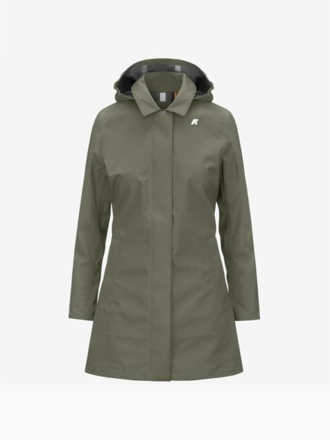 Beige Grey Women's Water-Resistant Trench Jacket with Detachable Hood Mathy reinterprets the iconic lines of the trench coat with functional yet elegant details. Its slim-fit silhouette is elevated with a shirt collar and detachable hood: handy in the event of sudden rain. The design stands out with its three ply construction: the outer layer is made of nylon, the inner layer is an insulating membrane, and there's a comfortable jersey lining. This style, perfect for transitional seasons, is lightweight and easy to wear, while also providing excellent protection as it can withstand water resistance up to 10,000mm. - Triple-layer nylon fabric - WR (Water Repellent) treatment - Water resistance: 10000 mm water column - Breathability: 10000 g/sqm/24h - Insulating membrane - Jersey lining - Light warmth - Heat-taped seams - Zip fastening - 2 zip pockets - Slim fit - White silicone logo patch Features Description: Jackets, Mid Gender: Woman Season: Spring, Summer Composition Lining: 100% Nylon Style: K7127JW - Color: 634