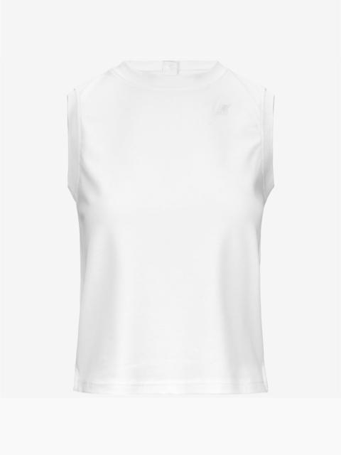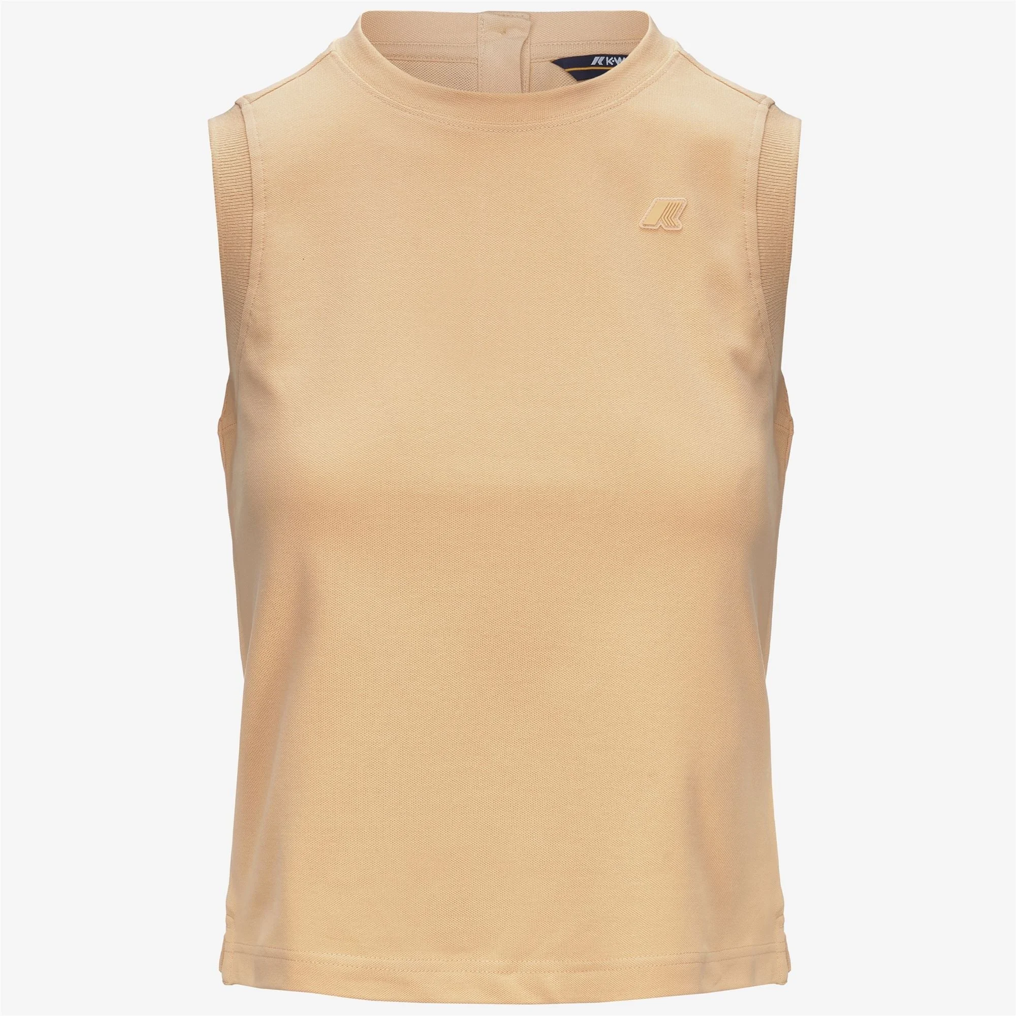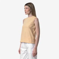 Beige Orange Women's Sleeveless Pique T-Shirt for Leisure and Travel Mosa is a women's sleeveless top made from stretch pique cotton, boasting a sporty and versatile appeal that is perfect for leisure time and travel. This sleeveless crew-neck T-shirt features ribbed collar and armhole trims, and nacre button fastening on the back. - Stretch pique fabric - Ribbed collar and trims - Concealed 3-button placket - Logo-engraved nacre buttons - Slim fit - Tone-on-tone silicone logo patch Features Description: T-Shirts & Top, T-Shirt Gender: Woman Season: Spring, Summer Composition Entire: 95% Cotton, 5% Elastane Style: K6132FW - Color: W6I