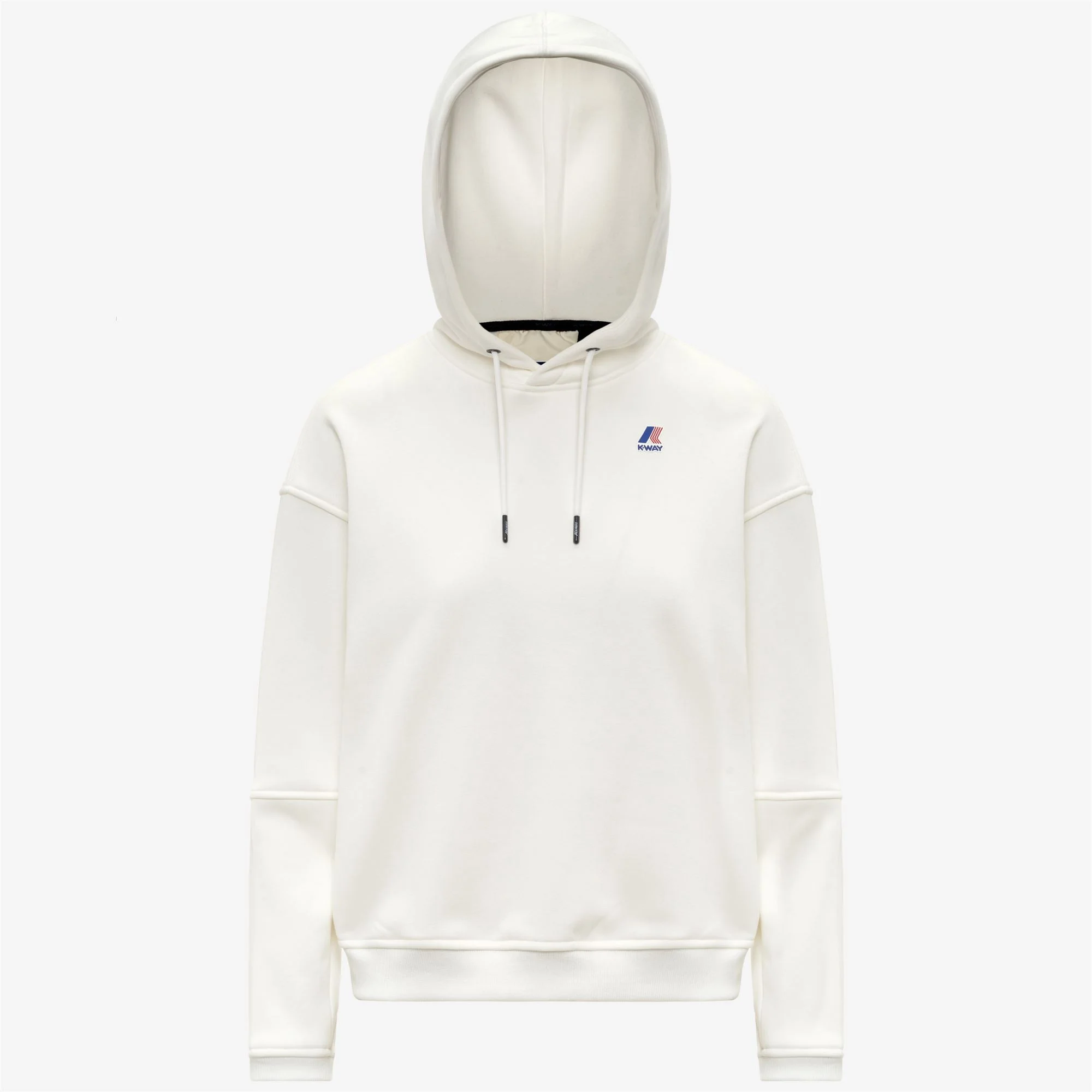 White Women's Outdoor Fleece Hoodie with Adjustable Hood Ninette is a women’s hoodie designed for outdoor activities, sports and leisure. Made from brushed cotton-blend fleece, it offers comfort, full freedom of movement and ribbed trims for a soft, secure fit. - Brushed cotton and polyester fleece fabric - Medium warmth rating - Adjustable drawstring hood - Ribbed cuffs and hem - Double-stitched back yoke - Regular fit - Colour-printed logo Features Description: Fleece, Hoodie Gender: Woman Season: Fall, Winter Composition Entire: 34% Cotton, 66% Polyester Style: K4147KW - Color: X42